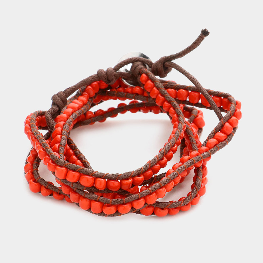 12PCS - Ribbon Colorful Rhinestone Layered Stretch Bracelets