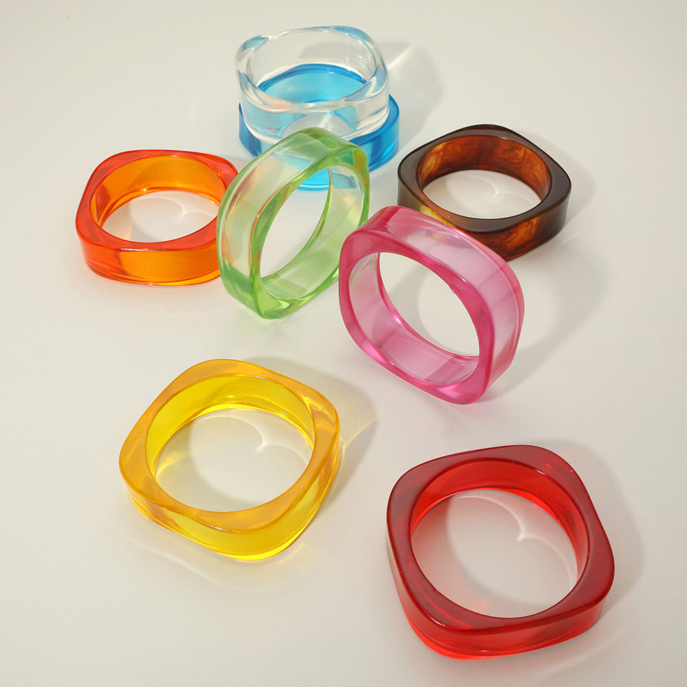 • Bold square-shaped transparent bangle with a smooth, modern finish. Perfect for adding a fun and edgy twist to casual outfits or layering with other bracelets for a trendy, stacked look.