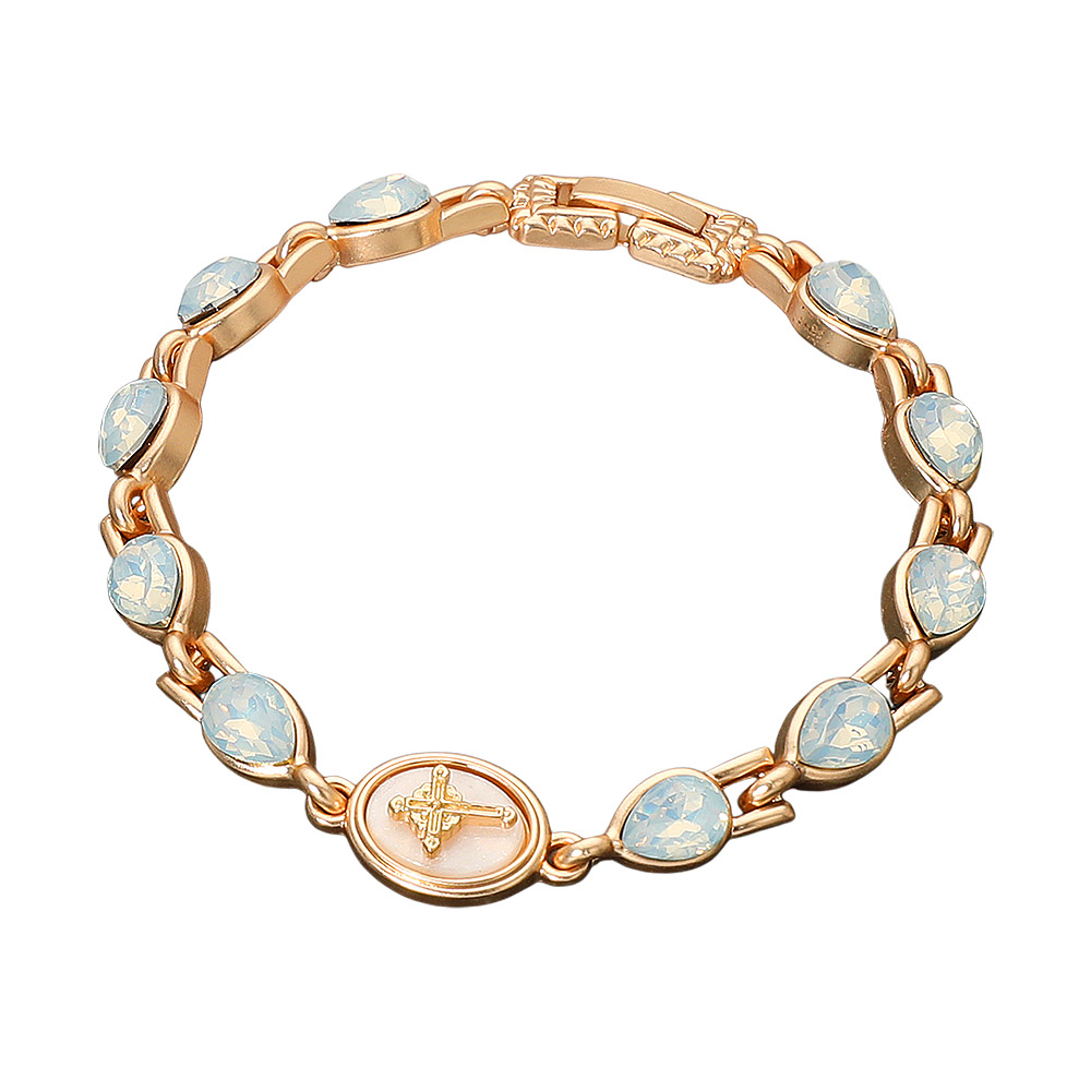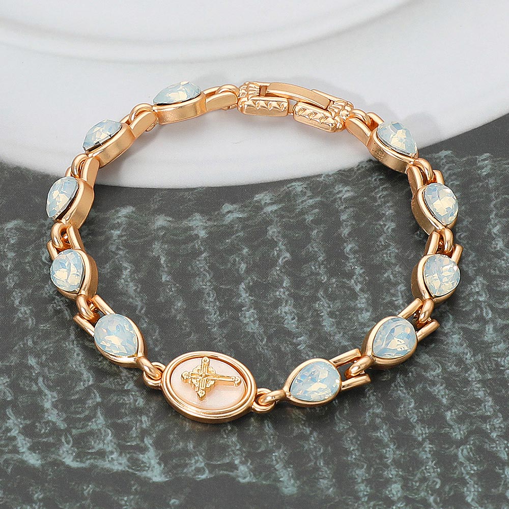 Cross Embossed Oval Charm Stone Bezel Link Bracelet