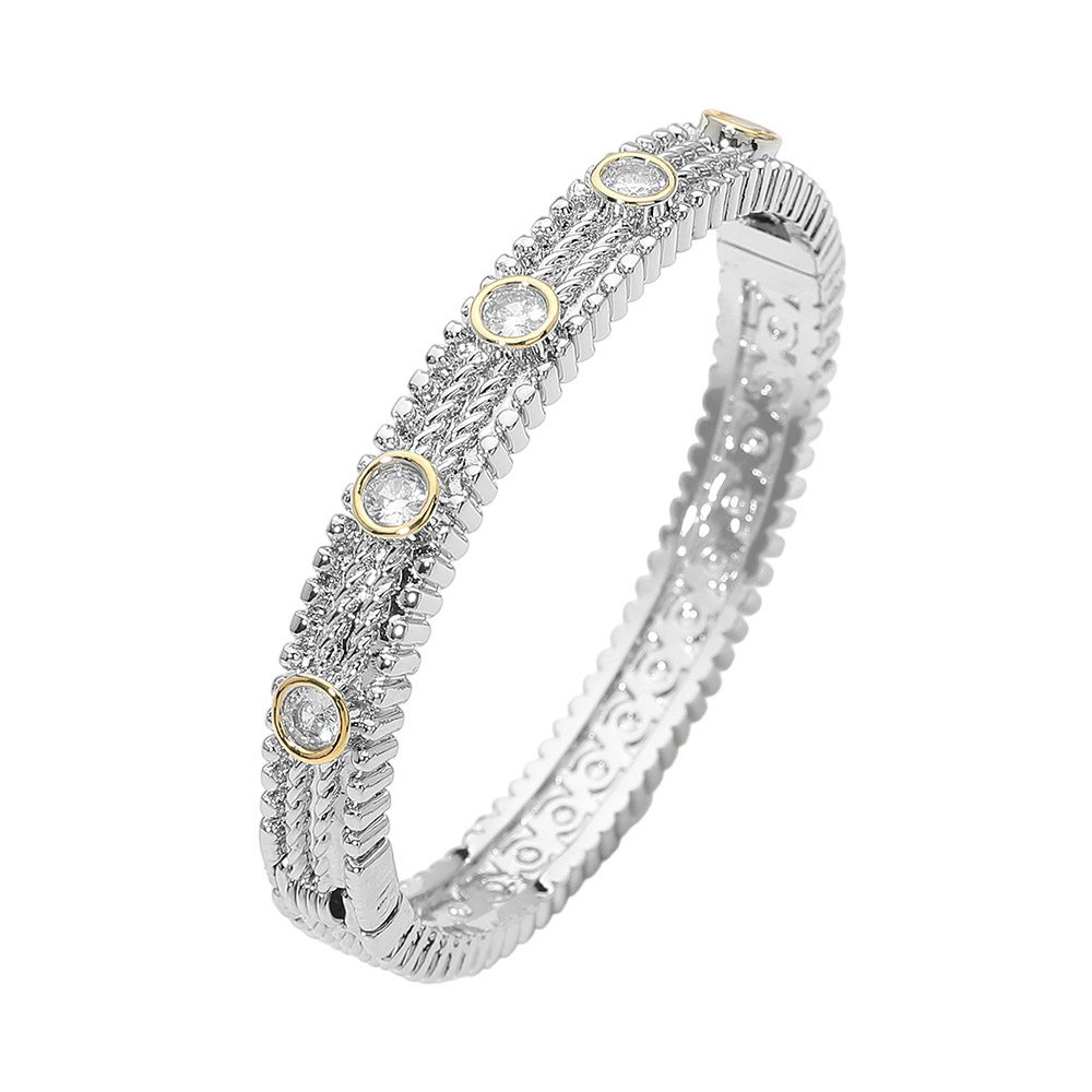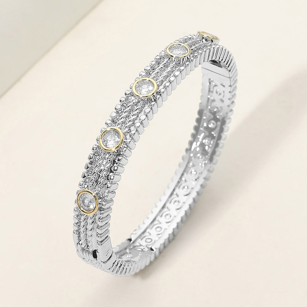 CZ Bezel Station Accent Textured Hinged Bangle Bracelet CZ Bezel Station Accent Textured Hinged Bangle Bracelet CZ Bezel Station Accent Textured Hinged Bangle Bracelet