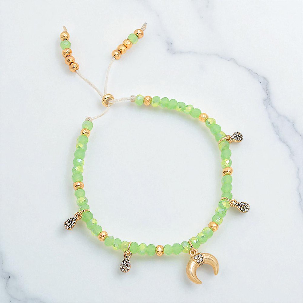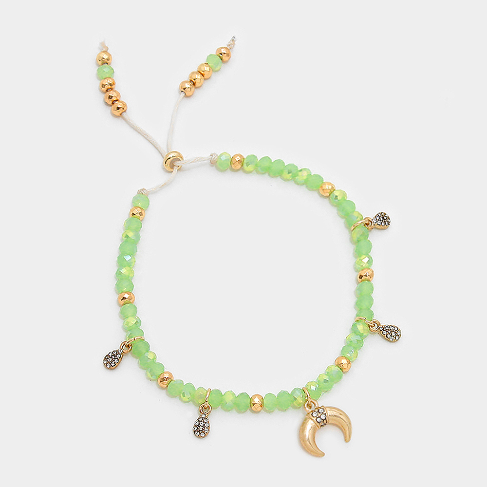 Double Horn Charm Beaded Adjustable Cinch Pull Tie Bracelet