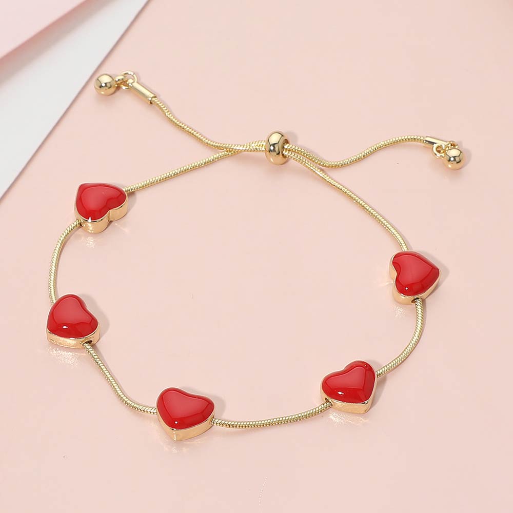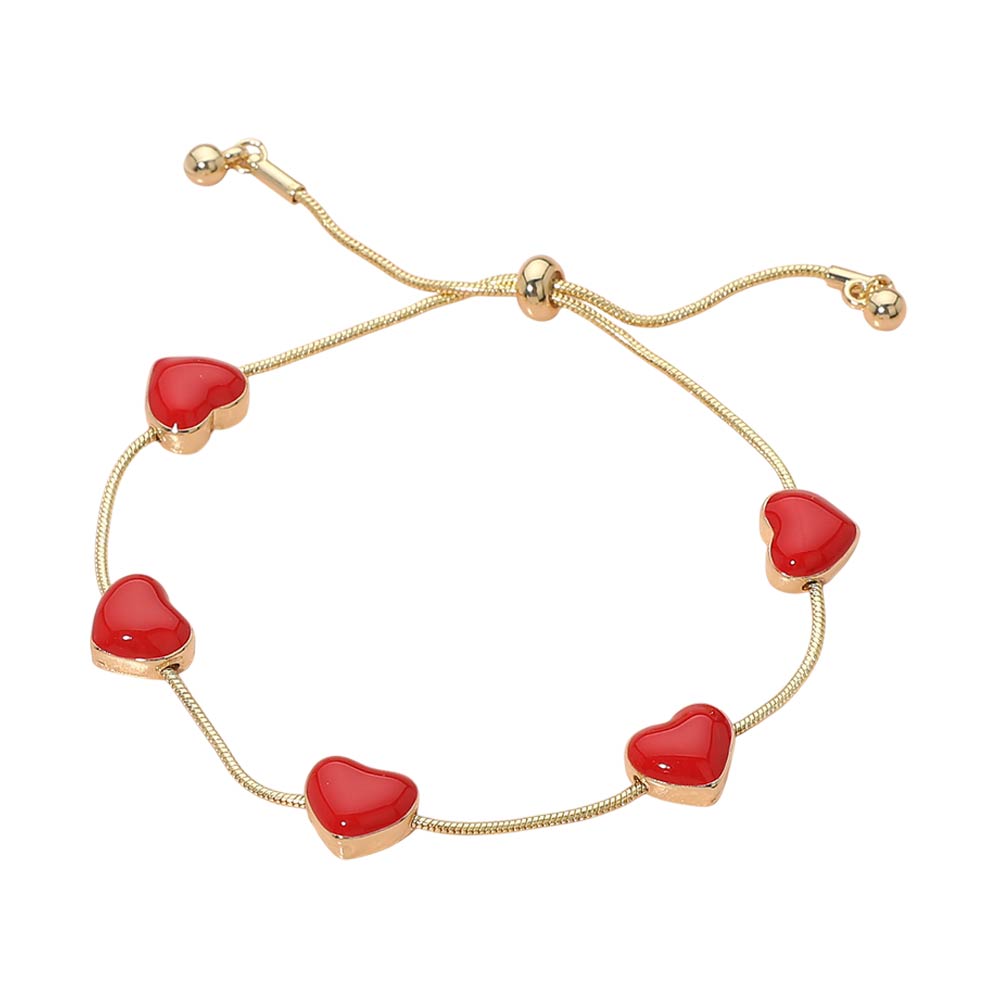 • Elegant adjustable bracelet featuring glossy heart station accents evenly spaced along a smooth slider chain. Designed for a comfortable, flexible fit, this romantic style is perfect for everyday wear, gifting, or layering with other bracelets. A charming addition to boutique assortments and curated jewelry collections.