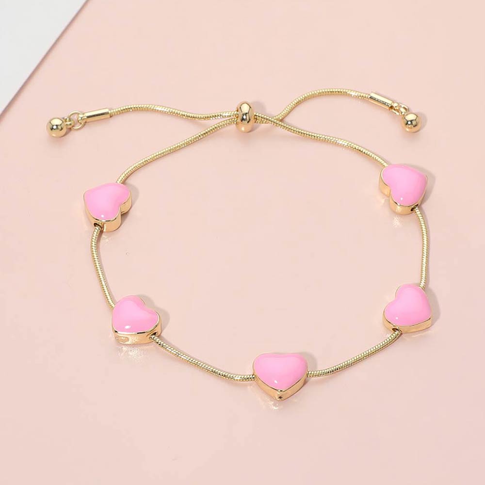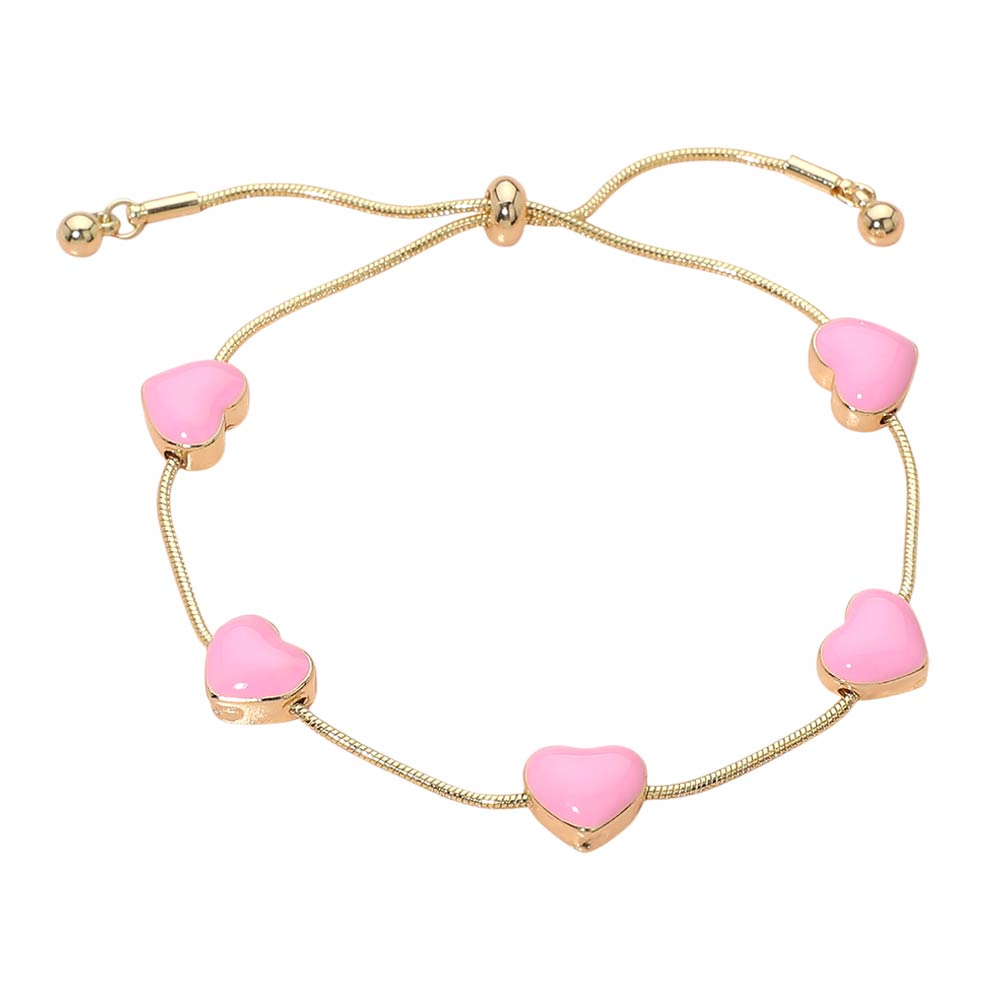 • Elegant adjustable bracelet featuring glossy heart station accents evenly spaced along a smooth slider chain. Designed for a comfortable, flexible fit, this romantic style is perfect for everyday wear, gifting, or layering with other bracelets. A charming addition to boutique assortments and curated jewelry collections.