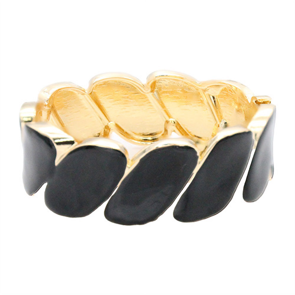 • Elegant statement bracelet featuring alternating marquise-shaped links with a polished finish. Designed with a modern geometric pattern and secure hinge closure, this bold accessory adds sophistication and style to both casual and formal looks.