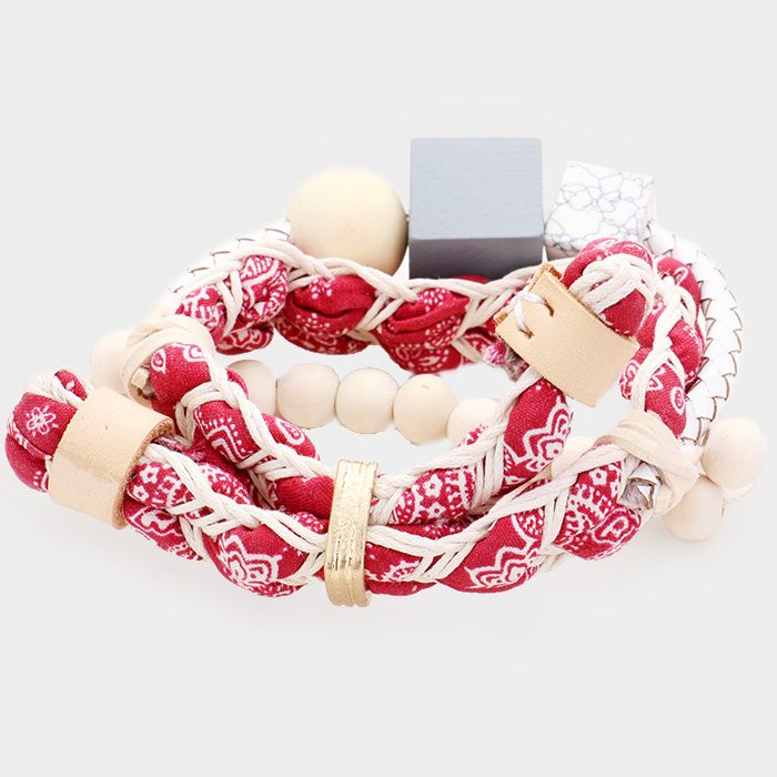 Fabric Braid Wood Cube Adjustable Bracelet