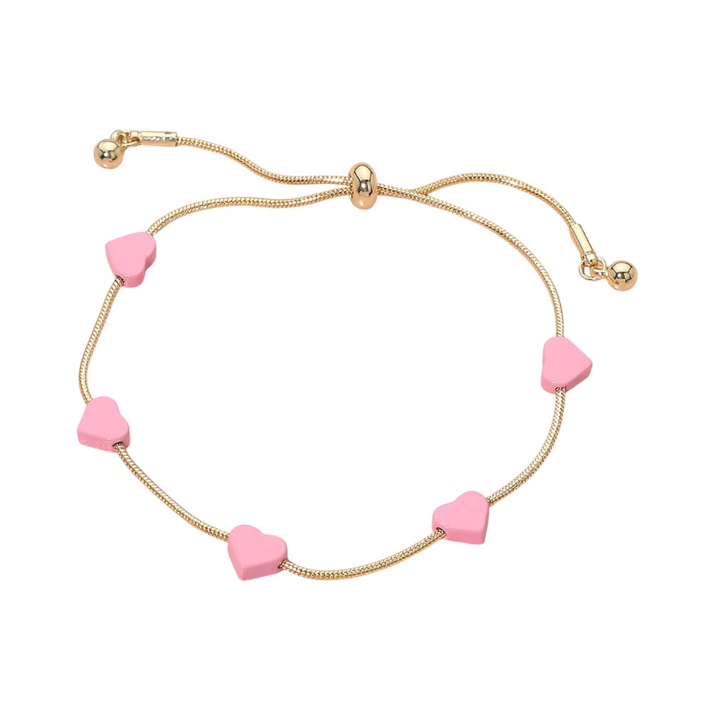 • Minimal adjustable bracelet featuring smooth heart station accents spaced along a sleek slider chain. Designed for easy sizing and all-day comfort, this bracelet delivers a clean, romantic look that works for everyday wear, layering, or gifting. A versatile style ideal for boutiques, curated collections, and modern jewelry displays.