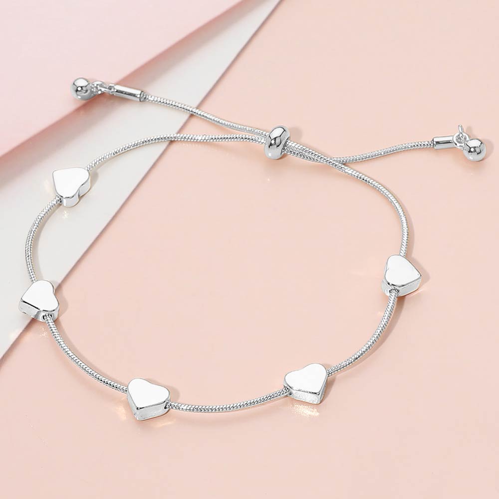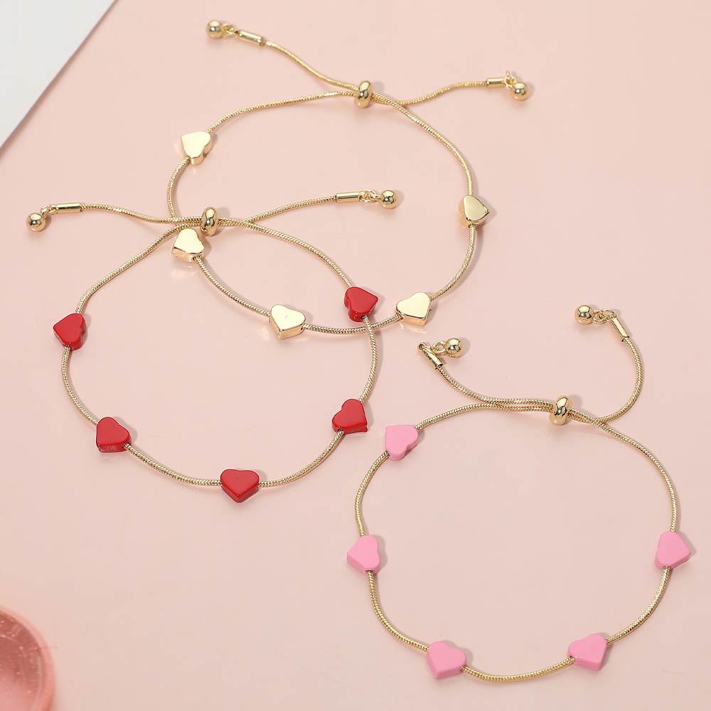 • Minimal adjustable bracelet featuring smooth heart station accents spaced along a sleek slider chain. Designed for easy sizing and all-day comfort, this bracelet delivers a clean, romantic look that works for everyday wear, layering, or gifting. A versatile style ideal for boutiques, curated collections, and modern jewelry displays.