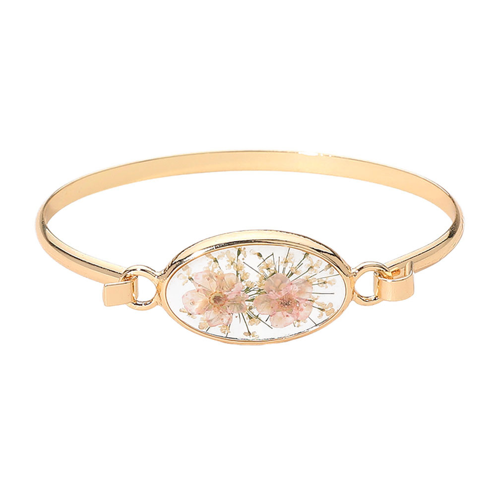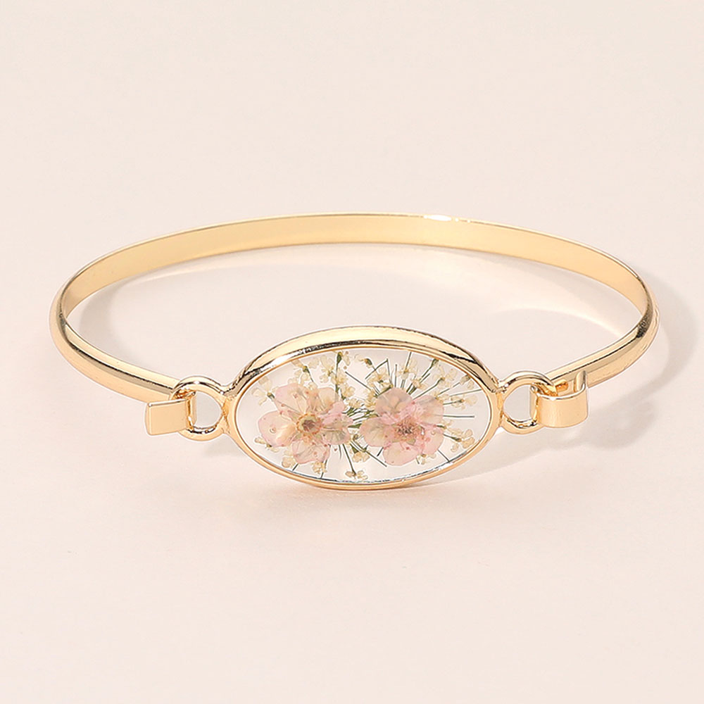 • Elevate everyday style with this Floral Encased Oval Bangle Bracelet, featuring a delicate preserved-flower centerpiece inside a sleek oval frame. Designed for comfortable wear and easy layering, it adds a refined, nature-inspired accent to casual looks, work outfits, or special occasions and makes a thoughtful gift choice.