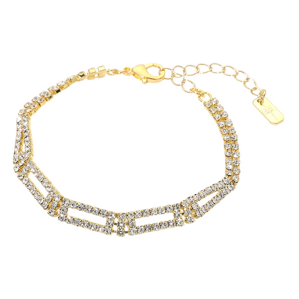 • Sophisticated adjustable bracelet designed with linked crystal detailing for a refined, polished look. Finished with an extender for a flexible fit, making it ideal for weddings, parties, formal events, or adding a touch of elegance to everyday styling.