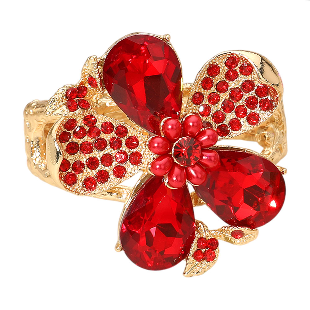 • Bold floral statement ring featuring layered petal design with faceted accents and dimensional detailing. Created to deliver standout impact for everyday styling, special occasions, and gift-ready assortments. A trend-forward accessory ideal for boutiques seeking eye-catching rings with elegant shine and strong visual appeal.