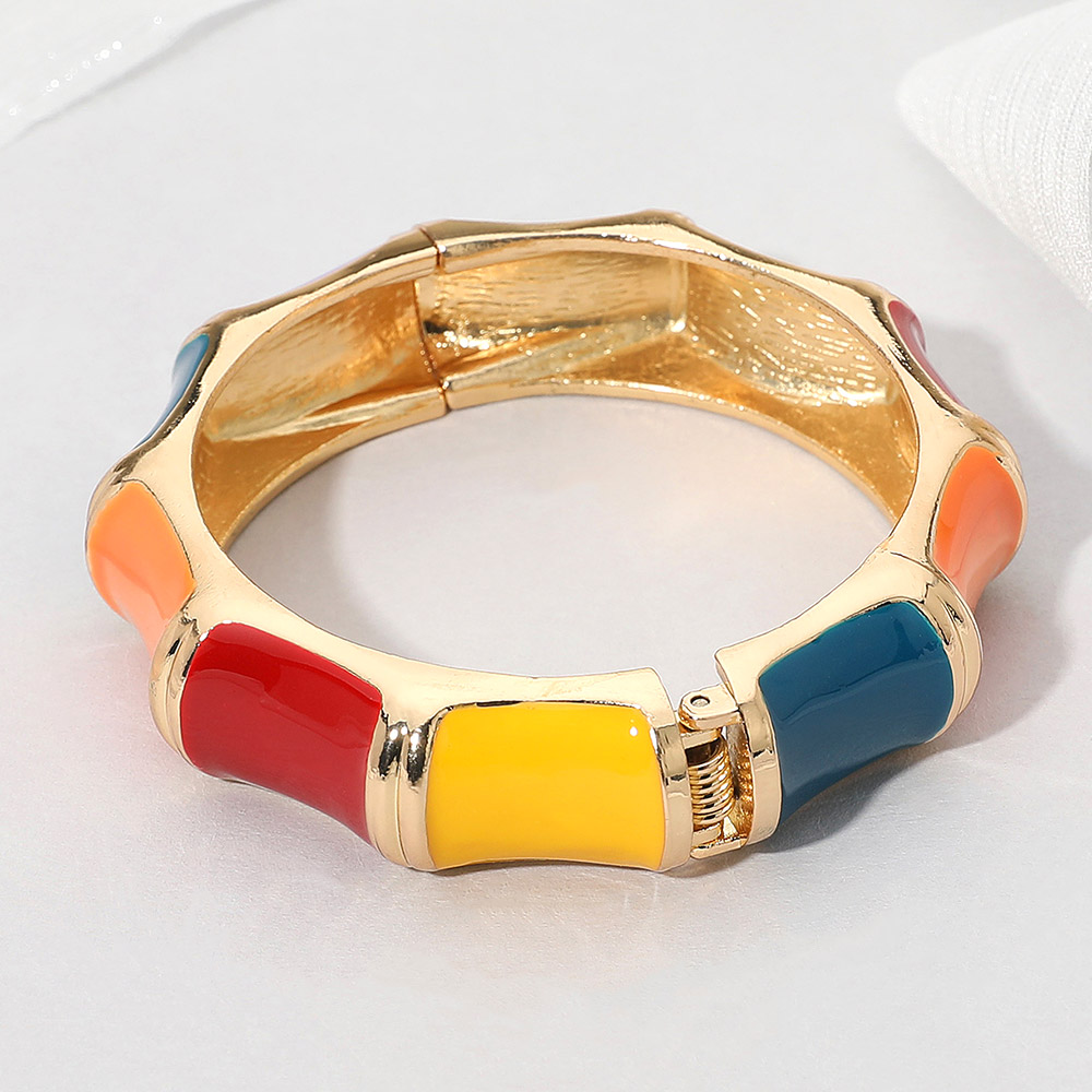 • Stylish enamel hinged bangle bracelet featuring a smooth wave-inspired bamboo shape with a glossy finish. The elegant segmented design adds a modern touch to any outfit, making it ideal for casual and dressy looks. Perfect accessory to elevate everyday or evening style.