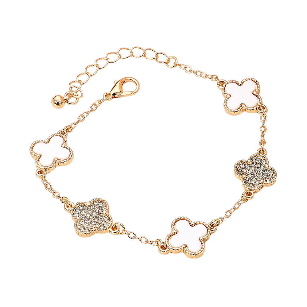 • Elevate your style with this elegant quatrefoil charm bracelet featuring sparkling crystal accents. A chic quatrefoil design perfect for layering or gifting. Adjustable chain for a comfortable fit and everyday glam.