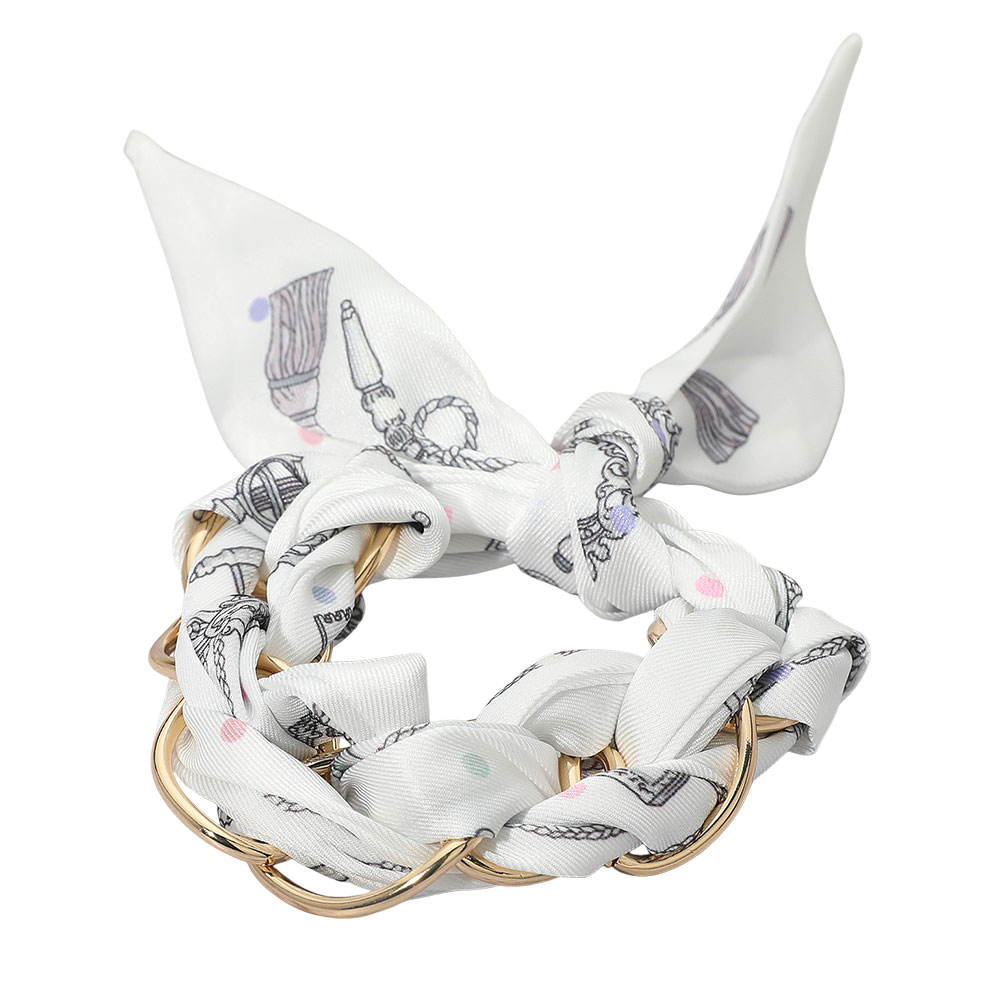 Metal Interlocking Ring Fabric Bandana Scarf Adjustable Bracelet