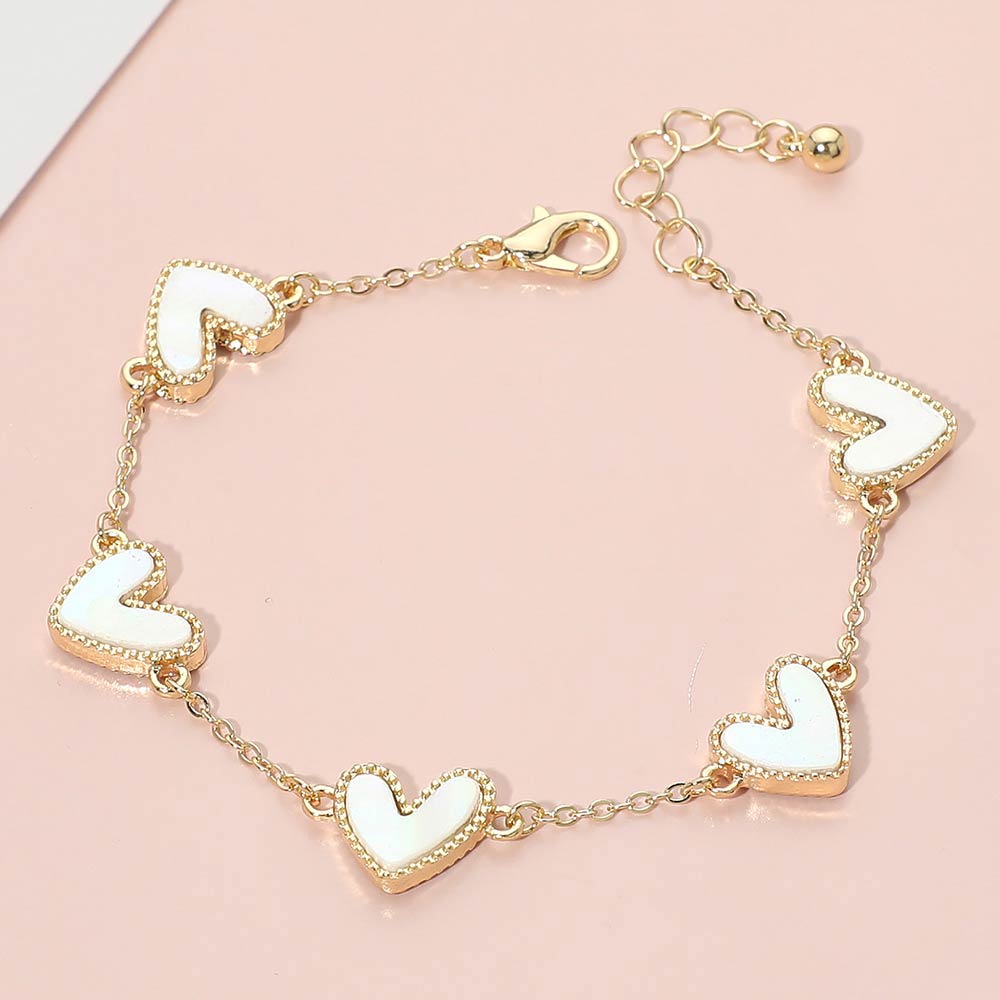 Mother of Pearl Heart Charm Station Bracelet Mother of Pearl Heart Charm Station Bracelet