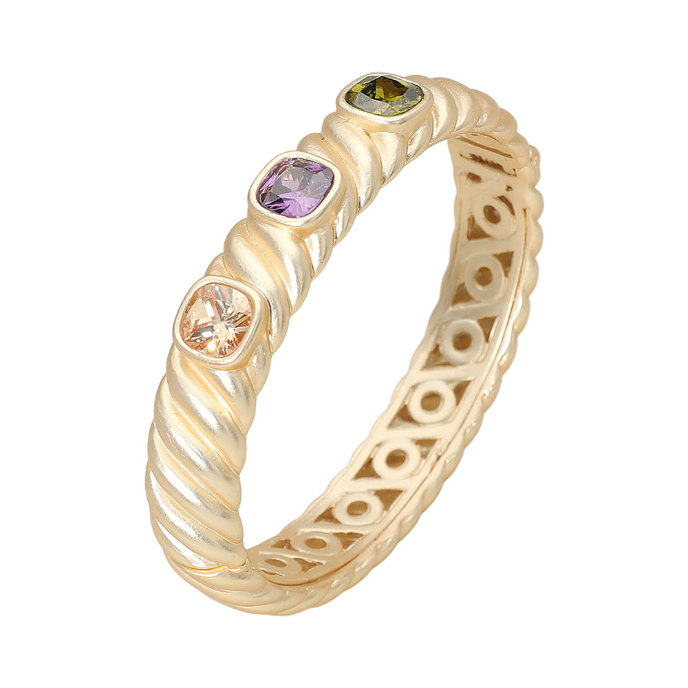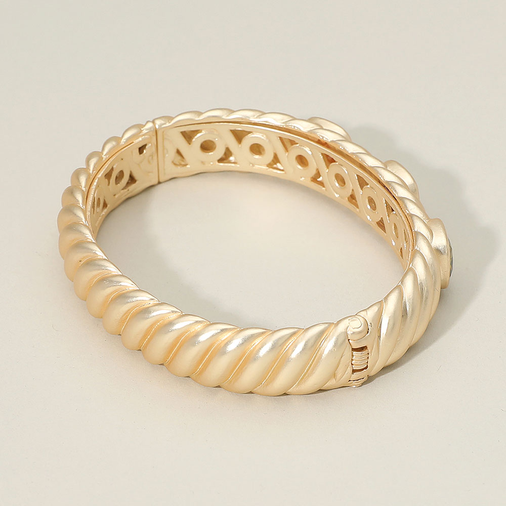 Details • Size : 0.5" H, 2.4" D • Hinged Closure • Elevate your style with this twisted multi-stone bracelet, featuring a graceful design accented by sparkling stones in vibrant hues. Its detailed band adds texture and sophistication, making it a chic choice for both everyday wear and elegant occasions. • CZ Cubic Zirconia