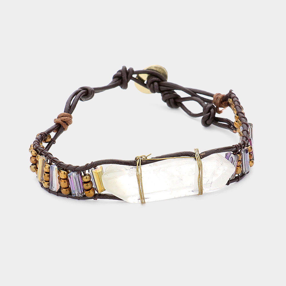 Faux Suede Arrow Pattern Beaded Metal Fringe Chain Drop Stretch Headband