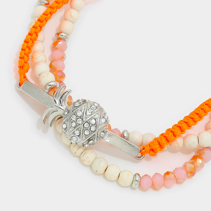 Pineapple Accented Double Tassel Adjustable Cinch Pull Tie Bracelet