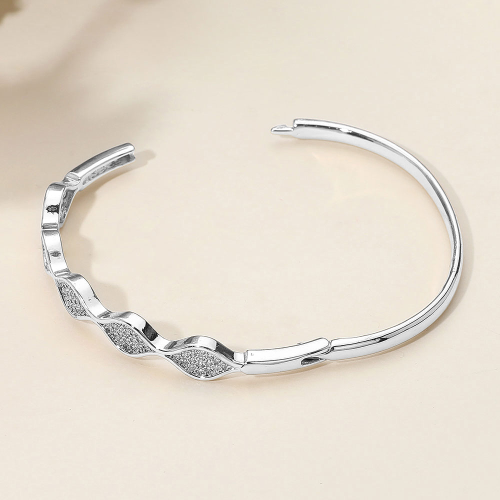 • Graceful bangle bracelet featuring a wavy silhouette accented with sparkling pave inlays. A refined accessory that blends fluid design with timeless elegance, perfect for adding a sophisticated touch to everyday and special occasion looks.