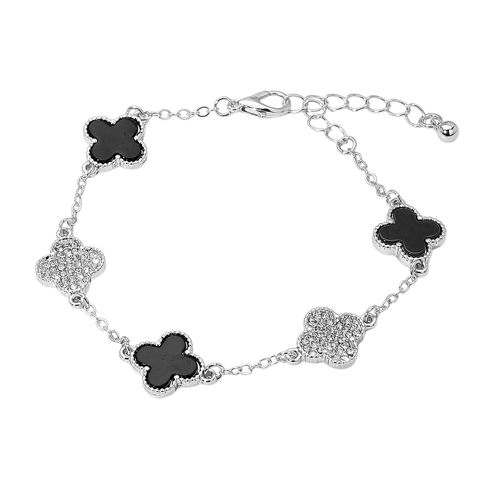 • Elevate your style with this elegant quatrefoil charm bracelet featuring sparkling crystal accents. A chic quatrefoil design perfect for layering or gifting. Adjustable chain for a comfortable fit and everyday glam.