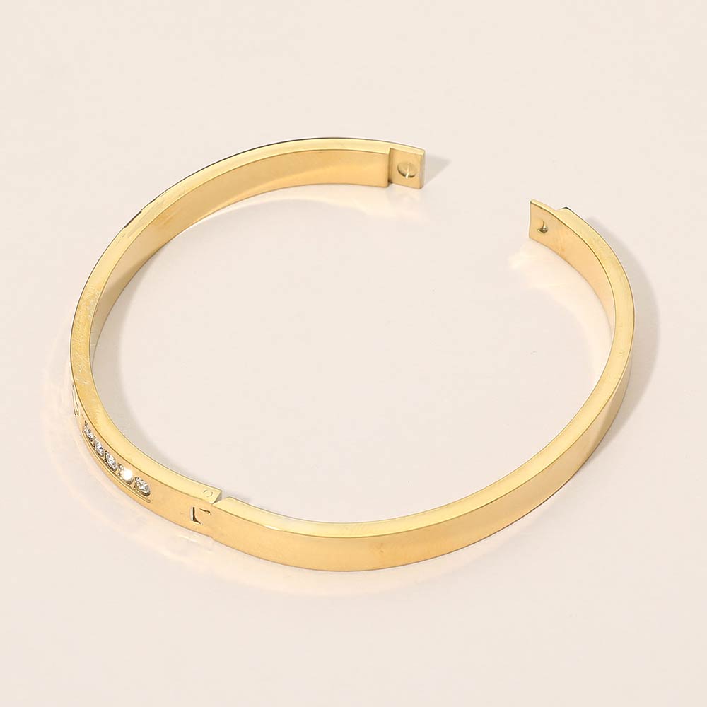 • Sleek hinged bangle bracelet featuring refined cz accents and subtle geometric details. Designed for effortless styling, this modern bracelet adds polished elegance to everyday outfits or special occasions. Perfect for stacking or wearing solo for a clean, sophisticated look.