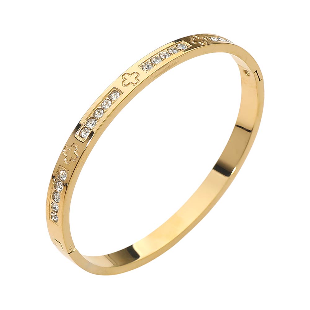 Stainless Steel CZ Accent Quatrefoil Engraved Hinged Bangle Bracelet Stainless Steel CZ Accent Quatrefoil Engraved Hinged Bangle Bracelet Stainless Steel CZ Accent Quatrefoil Engraved Hinged Bangle Bracelet