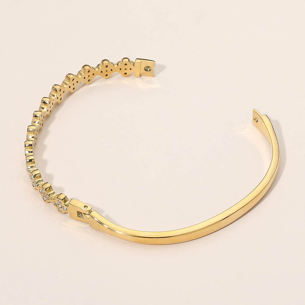 • Delicate hinged bracelet designed with repeating quatrefoil station accents and subtle cz details. This elegant bracelet offers a refined, feminine look that pairs effortlessly with casual outfits, office wear, or special occasions while providing comfortable, secure everyday styling.