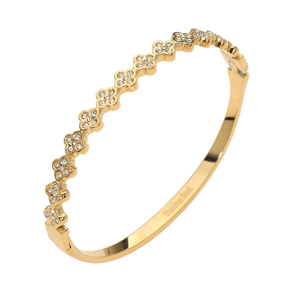 Stainless Steel CZ Pave Quatrefoil Station Hinged Bangle Bracelet Stainless Steel CZ Pave Quatrefoil Station Hinged Bangle Bracelet Stainless Steel CZ Pave Quatrefoil Station Hinged Bangle Bracelet