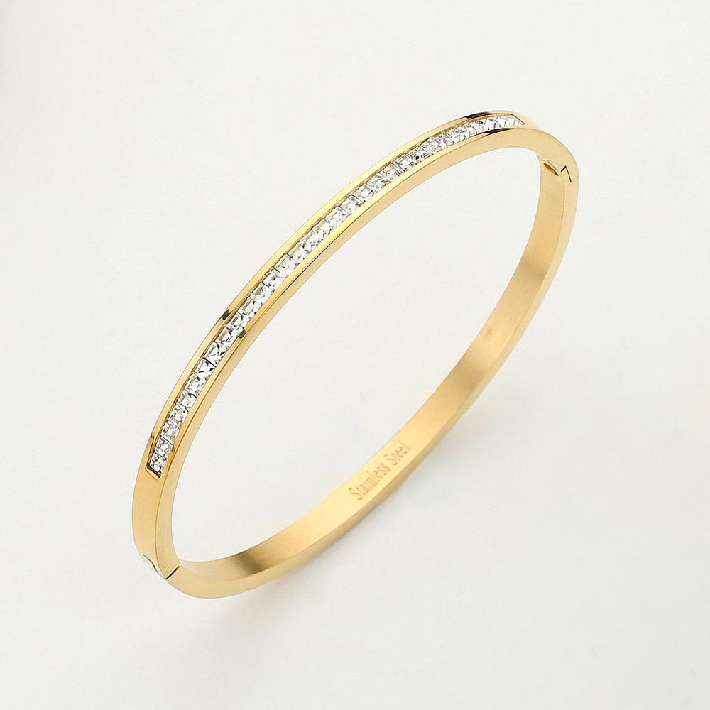 • Sleek bangle bracelet featuring a refined pavĂ©-style accent for subtle sparkle and modern elegance. Designed with a slim profile that layers effortlessly or stands alone as a minimalist statement, this bracelet offers versatile styling for everyday wear, special occasions, and curated boutique jewelry collections seeking timeless appeal.