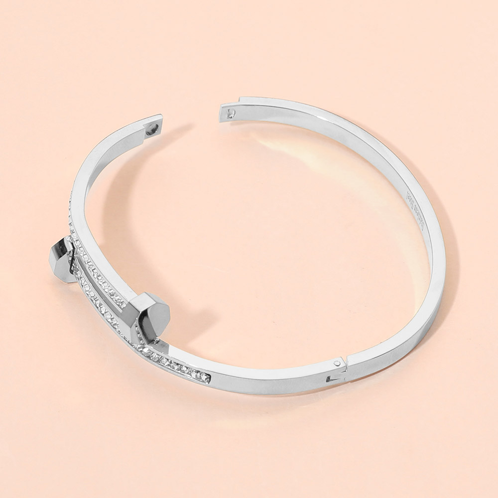 • Statement cuff bracelet featuring a modern nail-inspired silhouette with sparkling crystal accents. Designed with a sleek hinged structure for comfortable wear, this bracelet adds an edgy yet refined touch to everyday outfits, special occasions, and curated fashion jewelry collections.