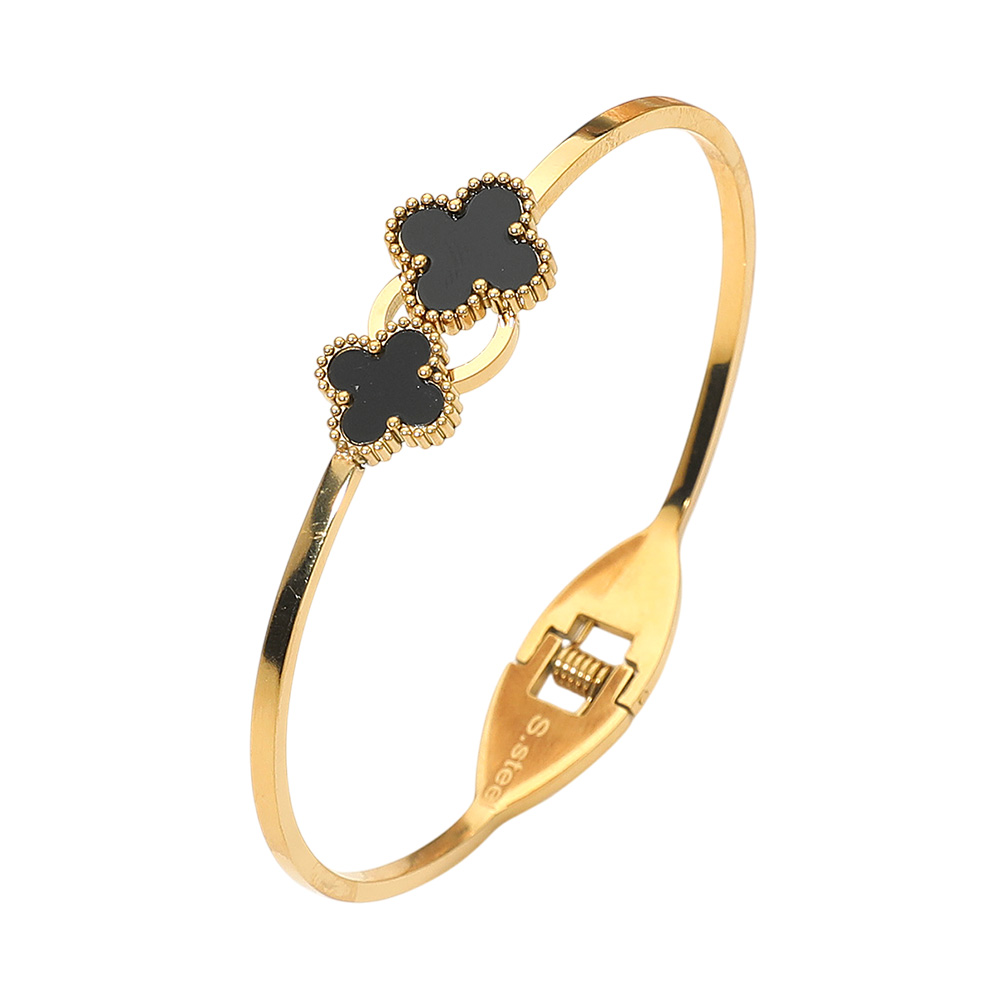 Details • Size : 0.6" H, 2.4" D • Hinged Closure • Bring elegance to your wrist with this quatrefoil charm hinged bangle bracelet. Designed with sleek detailing and a secure clasp, it’s perfect for both everyday wear and special occasions. A timeless accessory that adds refined charm and makes a thoughtful gift choice. • Stainless Steel