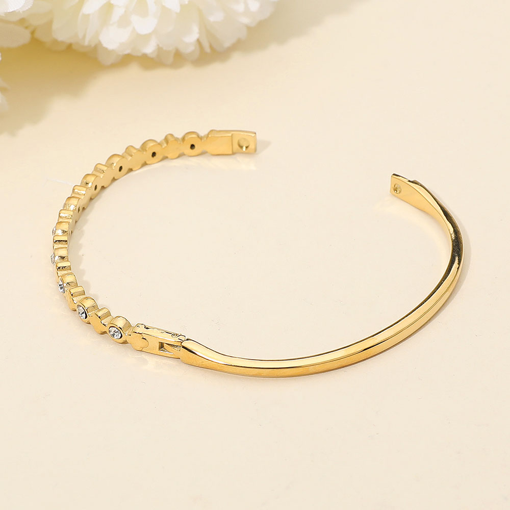 Details • Size : 0.2" H, 2.4" D • Hinged Closure • Water & Tarnish Resistant • Elegant slim bangle featuring a refined line of sparkling crystal accents for subtle shine and everyday sophistication. Designed for comfortable wear and easy layering, this timeless bracelet adds a polished finishing touch to casual outfits or special occasion styling. • Stainless Steel