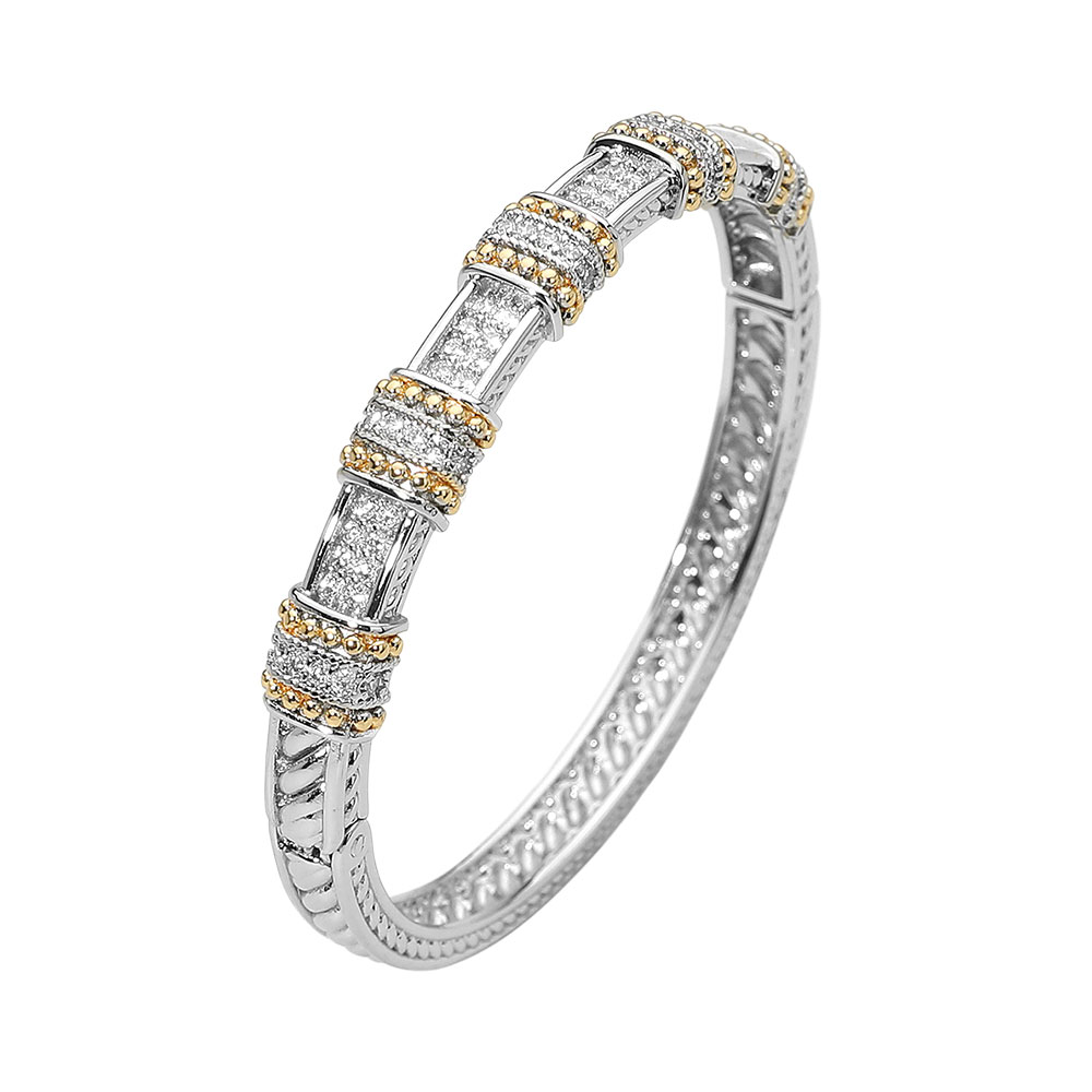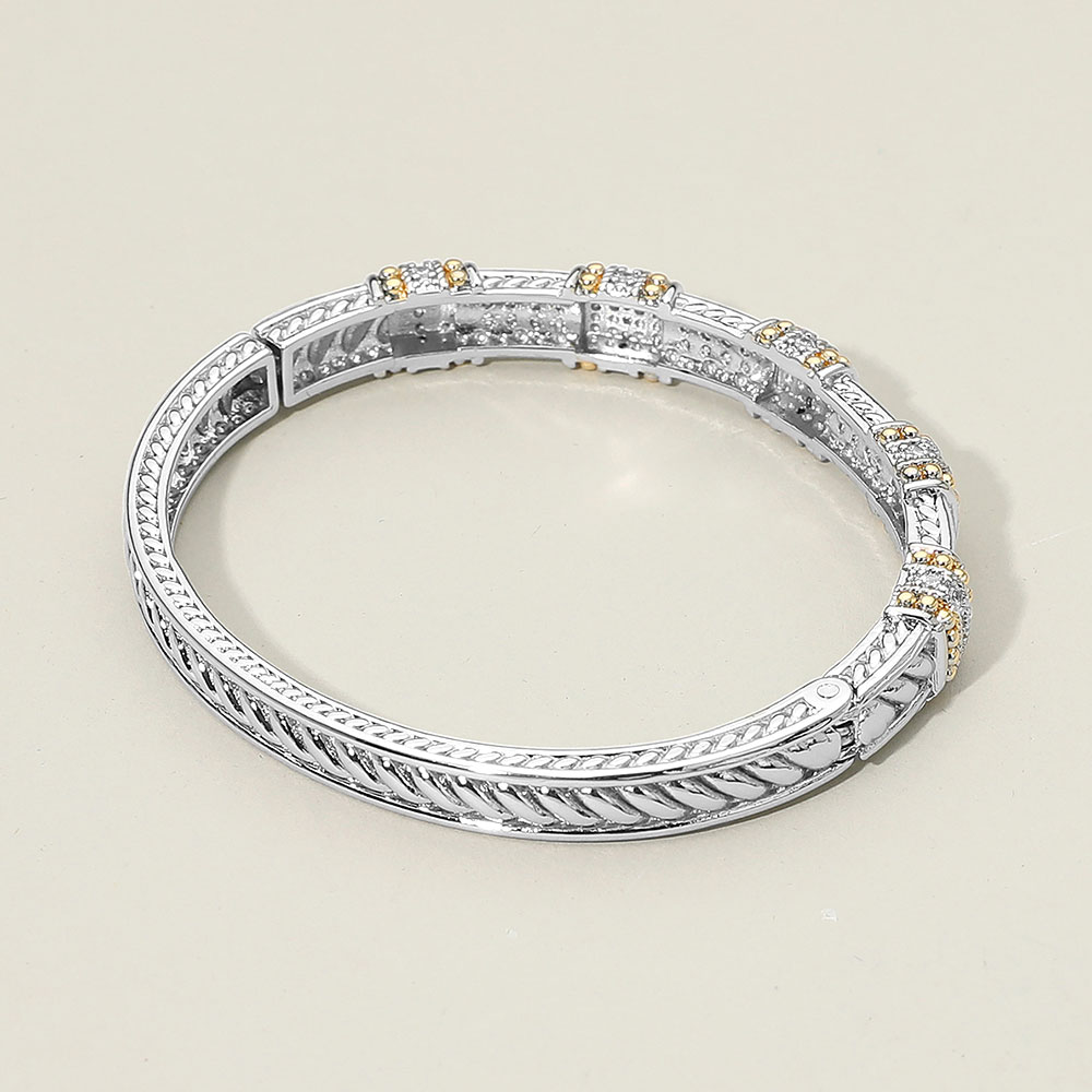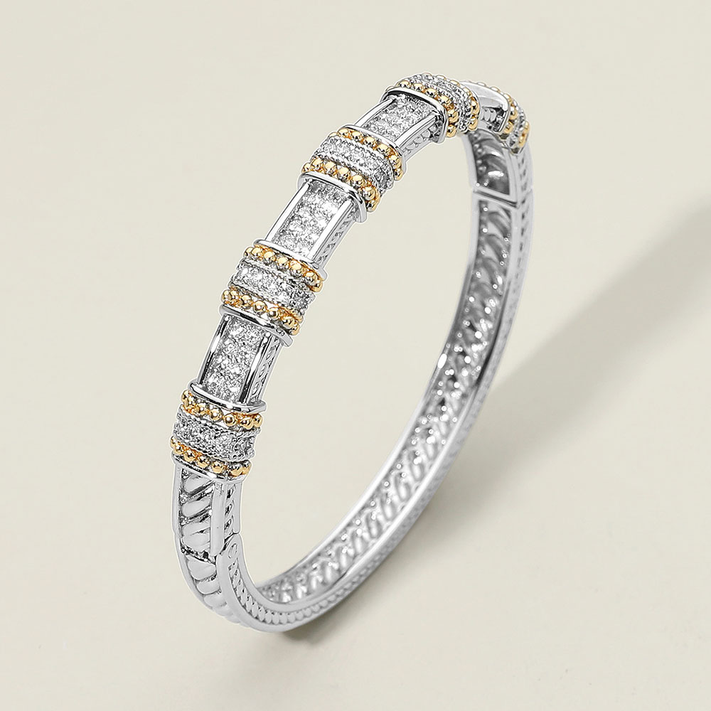 Two Tone CZ Stone Paved Elegant Geometric Hinged Bangle Bracelet Two Tone CZ Stone Paved Elegant Geometric Hinged Bangle Bracelet Two Tone CZ Stone Paved Elegant Geometric Hinged Bangle Bracelet