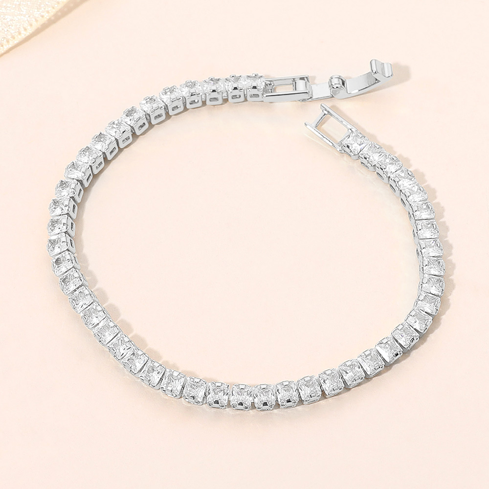 • Chic tennis bracelet featuring square-cut stones in a seamless line for radiant brilliance. Designed with a secure clasp, this bracelet adds timeless luxury and sophisticated charm, making it perfect for weddings, evening events, or refined everyday style.