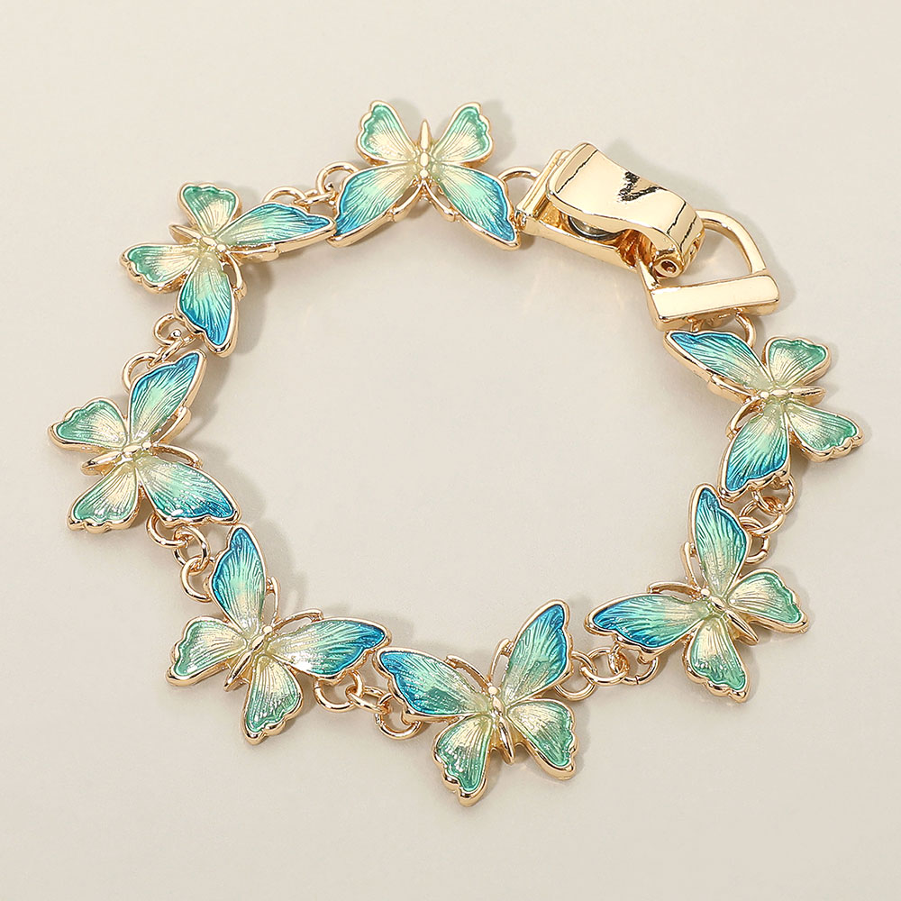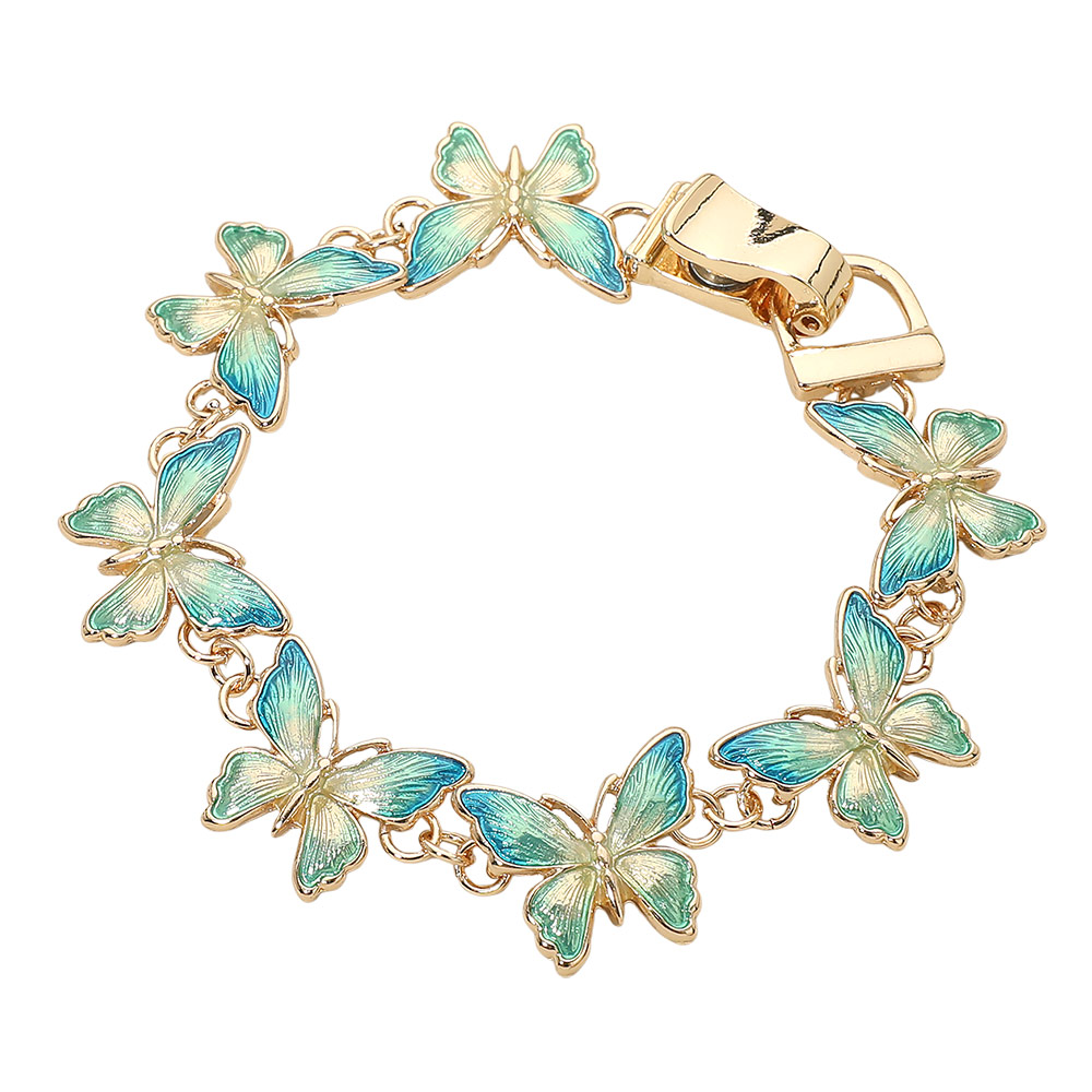 • Elegant butterfly link bracelet featuring detailed wing-shaped charms connected in a graceful silhouette. Designed for boutiques, gift shops, and seasonal collections, this nature-inspired bracelet adds whimsical movement and feminine charm to everyday outfits and special occasion accessory assortments.
