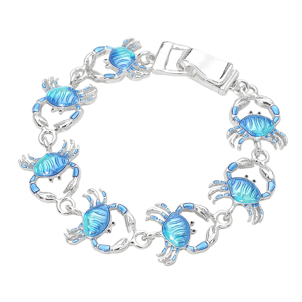 Details • Size : 0.75" H, 7" + 0.5" L • Magnetic Closure • Playful crab charm bracelet featuring detailed linked designs and a secure magnetic closure for easy wear. A fun ocean-inspired accessory ideal for beach boutiques, gift shops, and seasonal collections, offering eye-catching character, comfortable fit, and everyday coastal style appeal. • Lead and Nickel Compliant