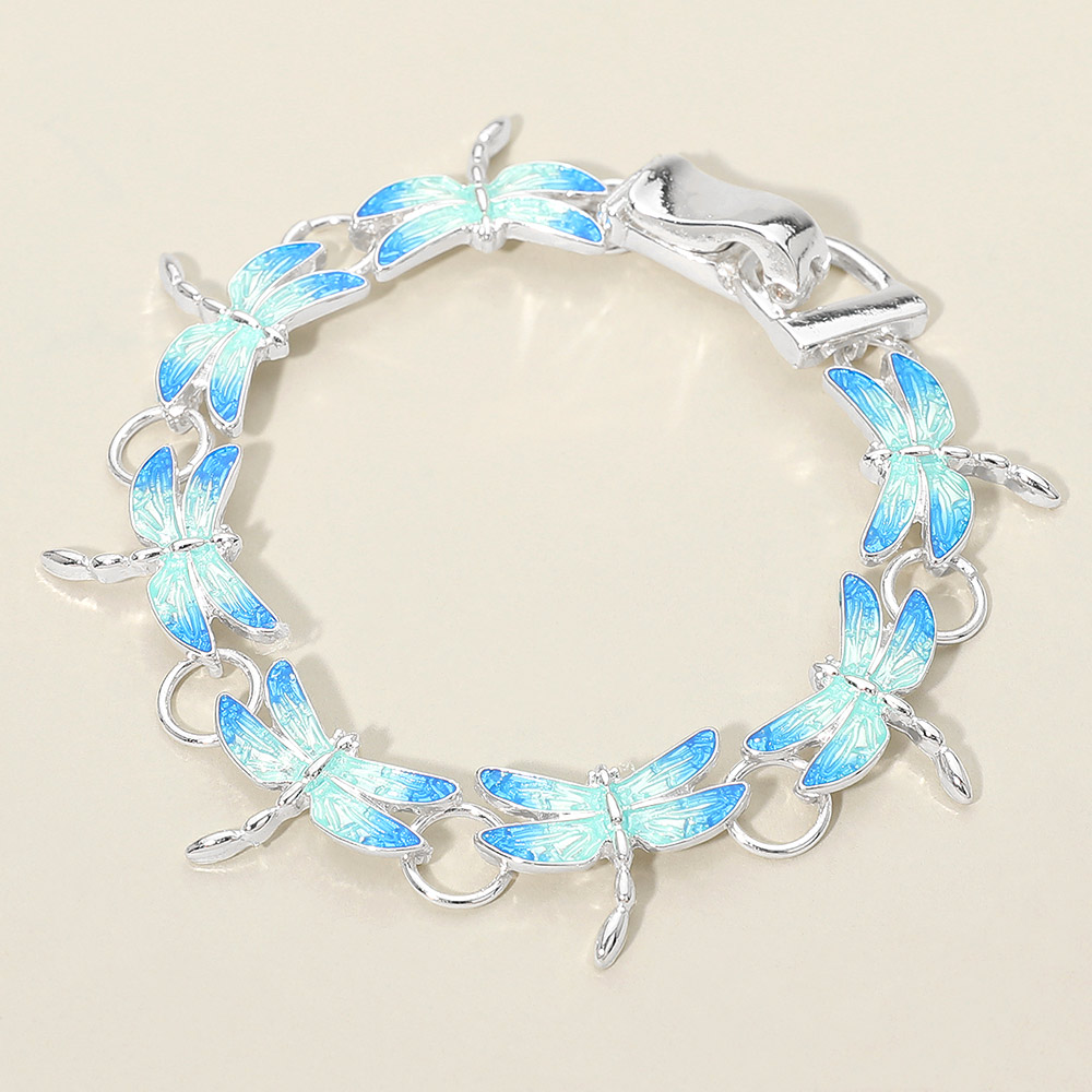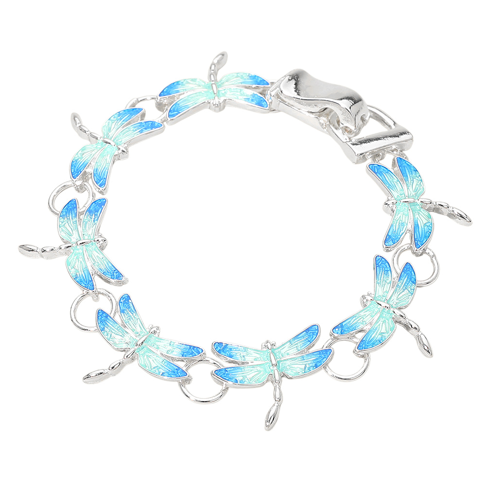 • Whimsical dragonfly link bracelet featuring finely detailed insect charms connected in a fluid silhouette. Inspired by nature and movement, this bracelet is ideal for boutiques and gift shops seeking playful, seasonal accessories that add lighthearted charm to everyday styling and curated collections.
