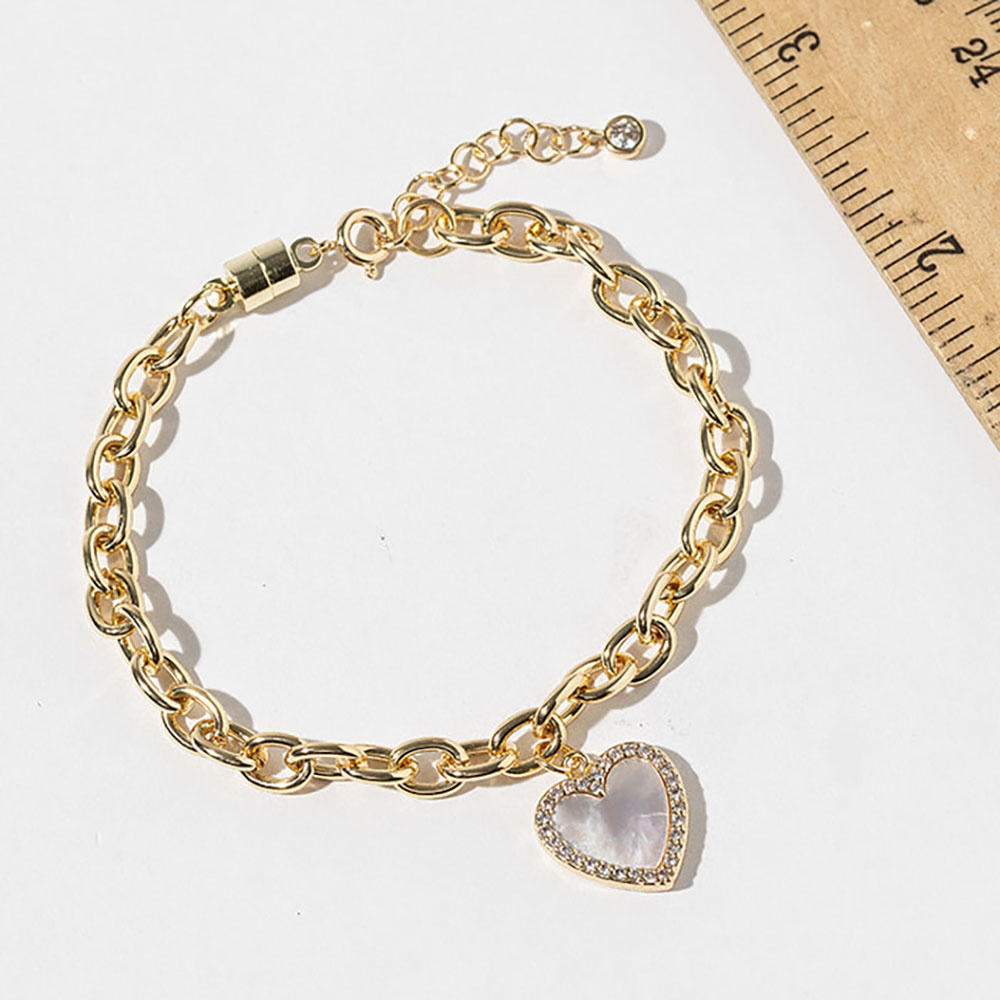 Gold Dipped CZ Stone Rim Mother of Pearl Heart Charm Magnetic Chain Bracelet Gold Dipped CZ Stone Rim Mother of Pearl Heart Charm Magnetic Chain Bracelet Gold Dipped CZ Stone Rim Mother of Pearl Heart Charm Magnetic Chain Bracelet Gold Dipped CZ Stone Rim Mother of Pearl Heart Charm Magnetic Chain Bracelet