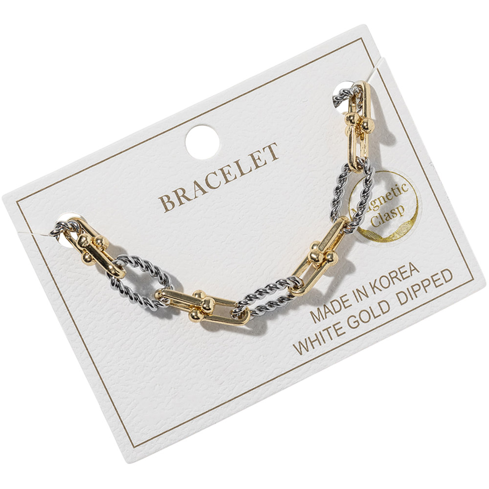Details • Size : 0.3" H, 8" + 1" L • Magnetic Closure • Modern link bracelet designed with a convenient magnetic clasp for quick, secure wear. A clean, versatile style that works effortlessly for daily outfits or layered bracelet looks. Ideal for gifting, boutique collections, and customers who value both style and ease of use. • Gold Dipped • Lead and Nickel Compliant • Made In Korea
