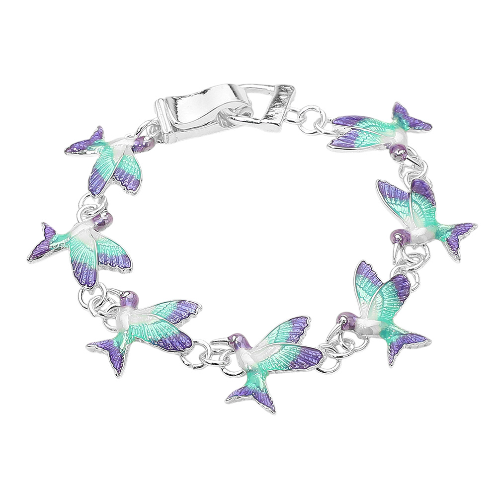 Details • Size : 0.75" H, 7" + 0.7" L • Magnetic Closure • Delightful bird charm bracelet featuring detailed flying bird designs with vibrant accents. Lightweight and stylish, this accessory adds a playful yet elegant touch to everyday outfits. Perfect for nature lovers, casual wear, or gifting, it brings charm and character to any jewelry collection. • Lead and Nickel Compliant