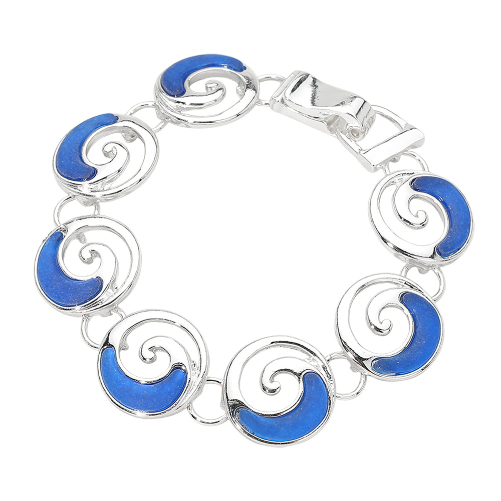 • Elegant swirl link bracelet designed with flowing wave-inspired shapes and a secure magnetic closure for effortless wear. A versatile accessory that complements casual and resort looks, making it ideal for beach themes, gift shops, and seasonal jewelry collections.