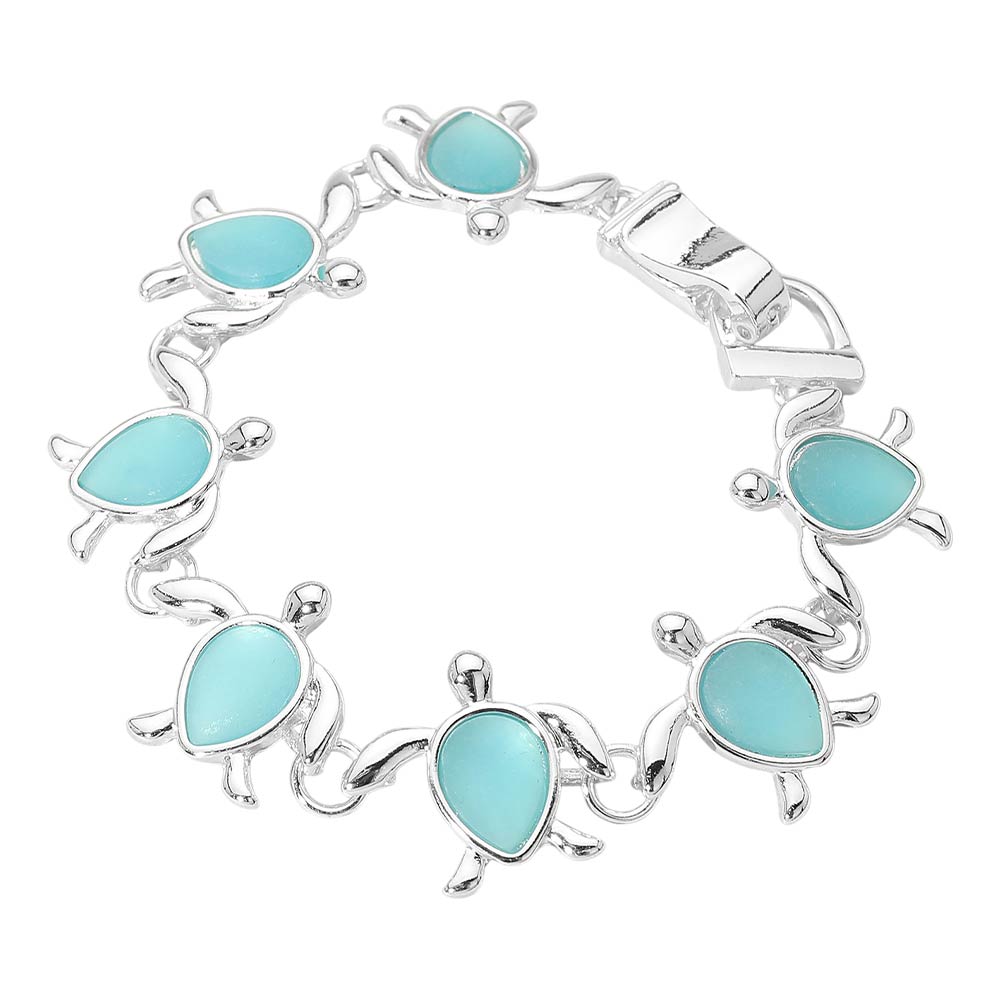 Sea Glass Turtle Charm Link Magnetic Bracelet