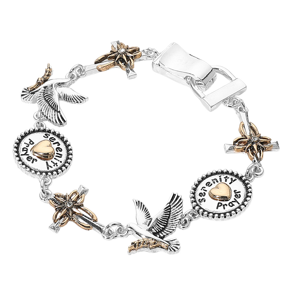 Details • Size : 0.75" H, 8" L • Magnetic Closure • Carry inspiration wherever you go with this Serenity Prayer charm bracelet featuring symbolic accents and engraved message details. A meaningful accessory designed to express faith, hope, and reflection, perfect for thoughtful gifting or personal wear on moments of mindfulness and encouragement. • Lead and Nickel Compliant