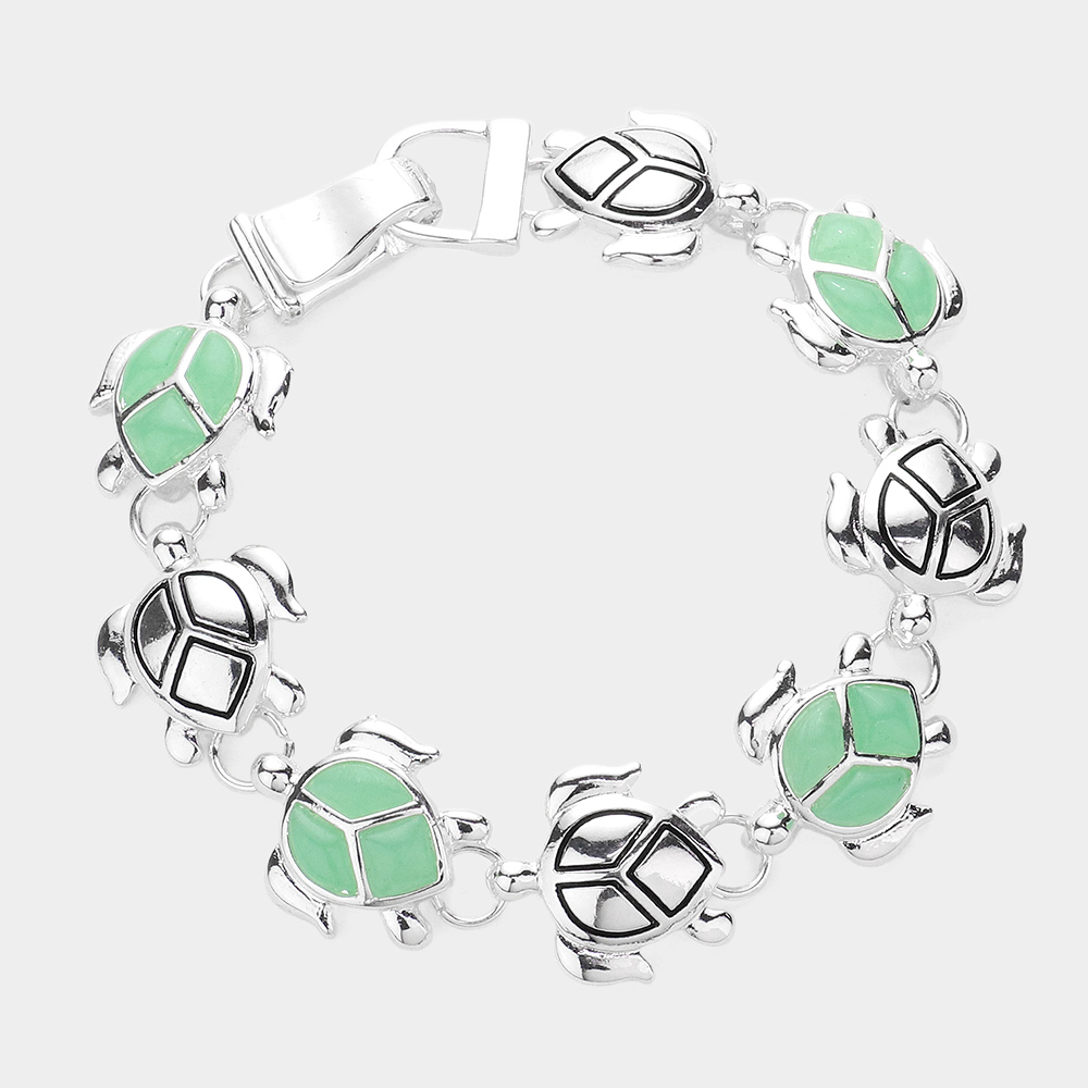 Sea Turtle Embossed Metal Disc Link Stretch Bracelet