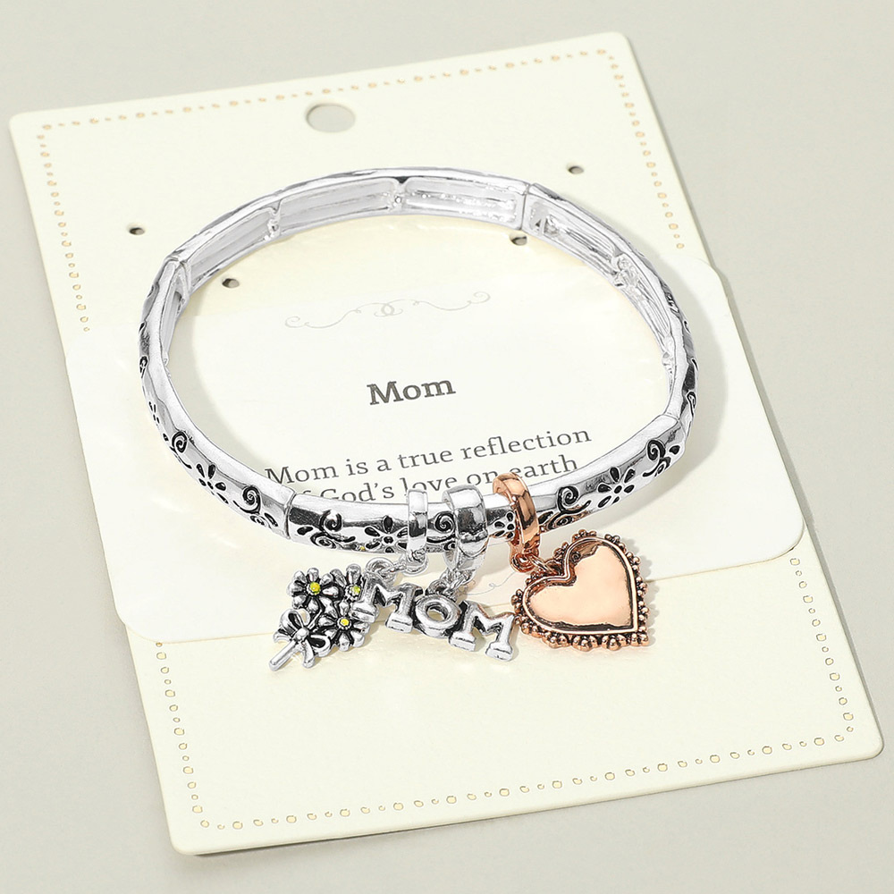 Mom Message Heart Flower Charm Stretch Bracelet Mom Message Heart Flower Charm Stretch Bracelet Mom Message Heart Flower Charm Stretch Bracelet