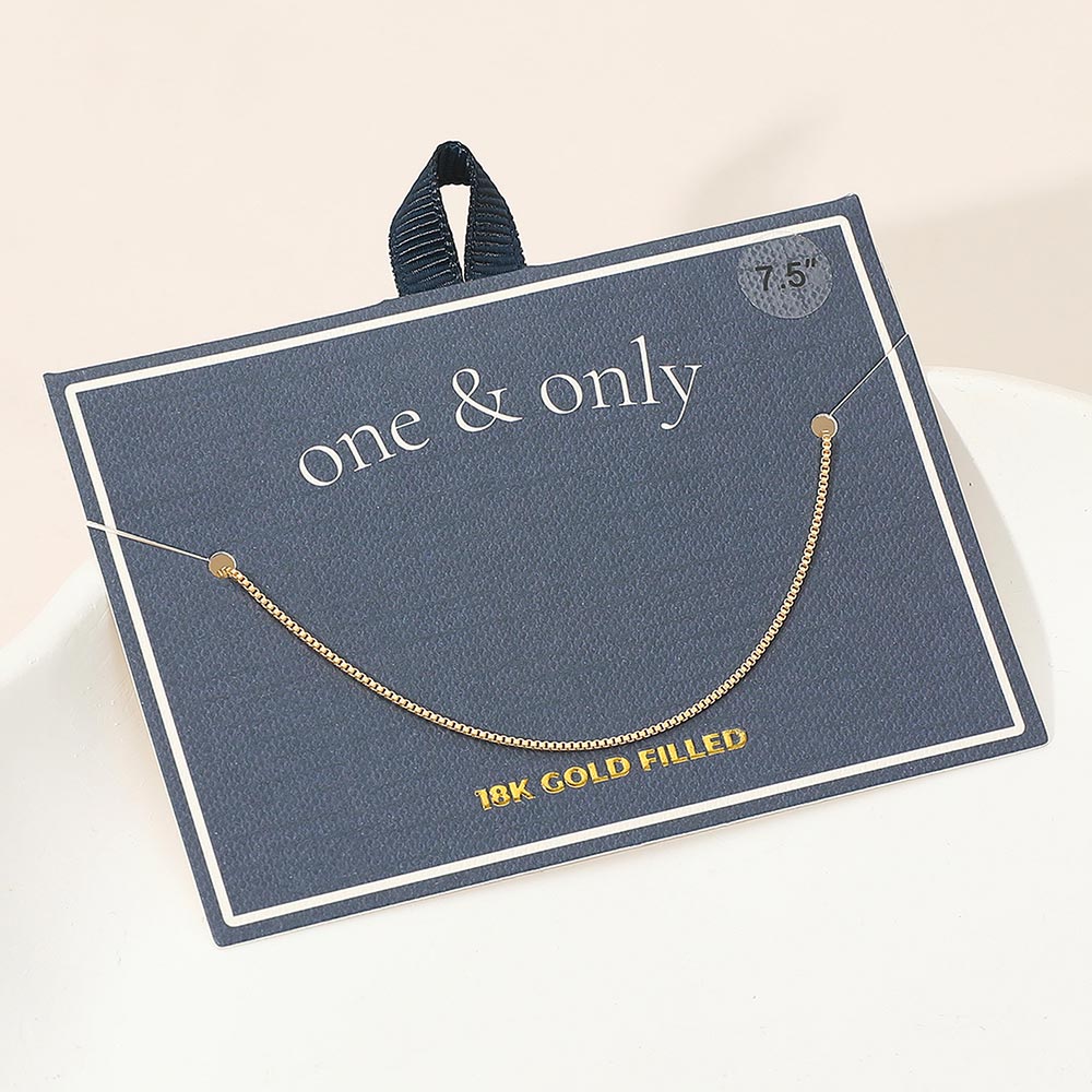 Details • Size : 0.1" H (1mm), 7.5" L • Lobster Clasp Closure • Elegant box chain bracelet featuring slim, polished links for a smooth and refined look. Its minimalist design makes it ideal for layering or everyday wear, adding a subtle touch of sophistication and timeless style to any jewelry collection. • Lead and Nickel Compliant • Made In Brazil