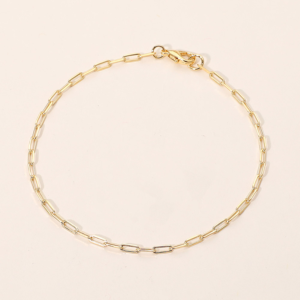 Details • Size : 0.1" H (3mm), 7.5" L • Elegant chain bracelet featuring a minimalist link design for timeless sophistication. Lightweight and versatile, it’s perfect for layering or wearing alone. Presented on a “one & only” card for effortless gifting and everyday elegance. • Lead and Nickel Compliant • Gold Filled • Made In Brazil
