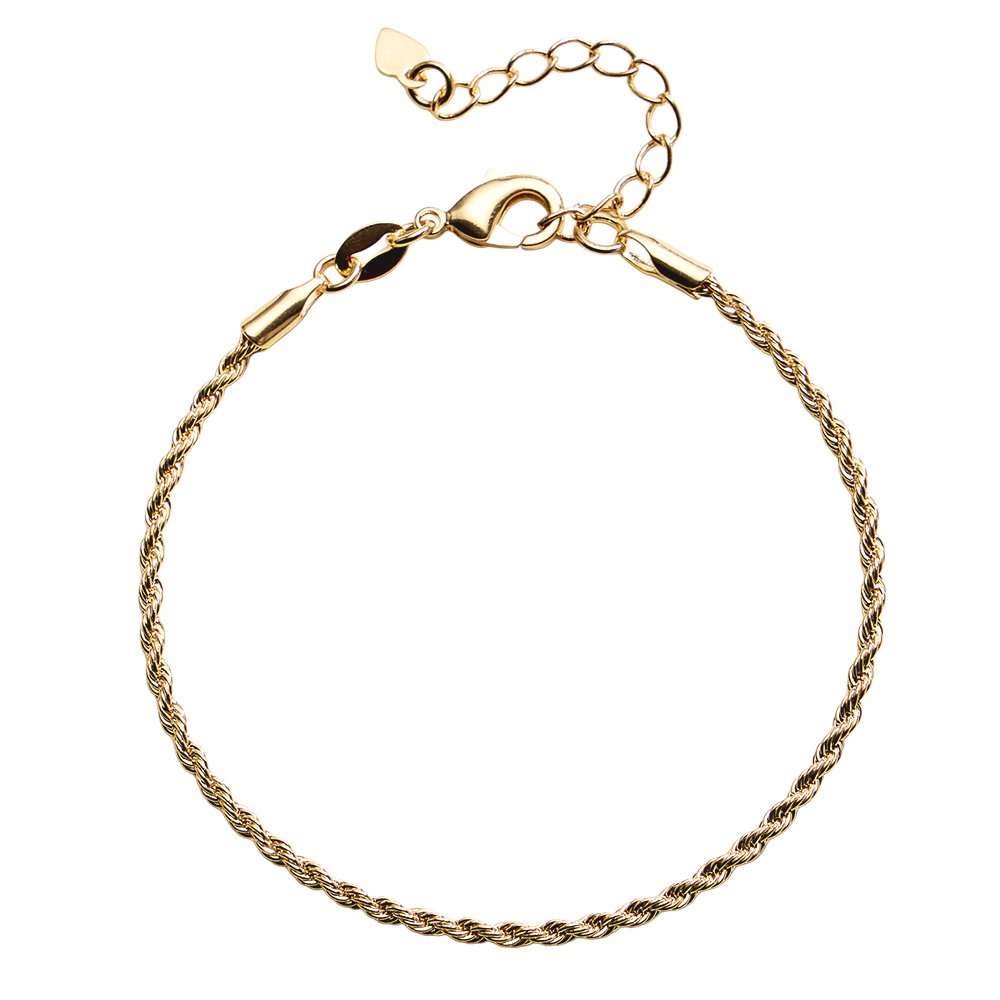 Details • Size : 0.1" H, 7" + 1.75" L • Lobster Clasp Closure • This minimal rope chain bracelet features a refined rope-style design that adds subtle texture and shine to everyday looks. Lightweight with an adjustable fit, it layers beautifully or stands alone as a timeless accent. A versatile bracelet choice for casual wear, special occasions, gifting, and curated retail collections. • Gold Filled • Hypoallergenic • Lead and Nickel Compliant • Made In Brazil