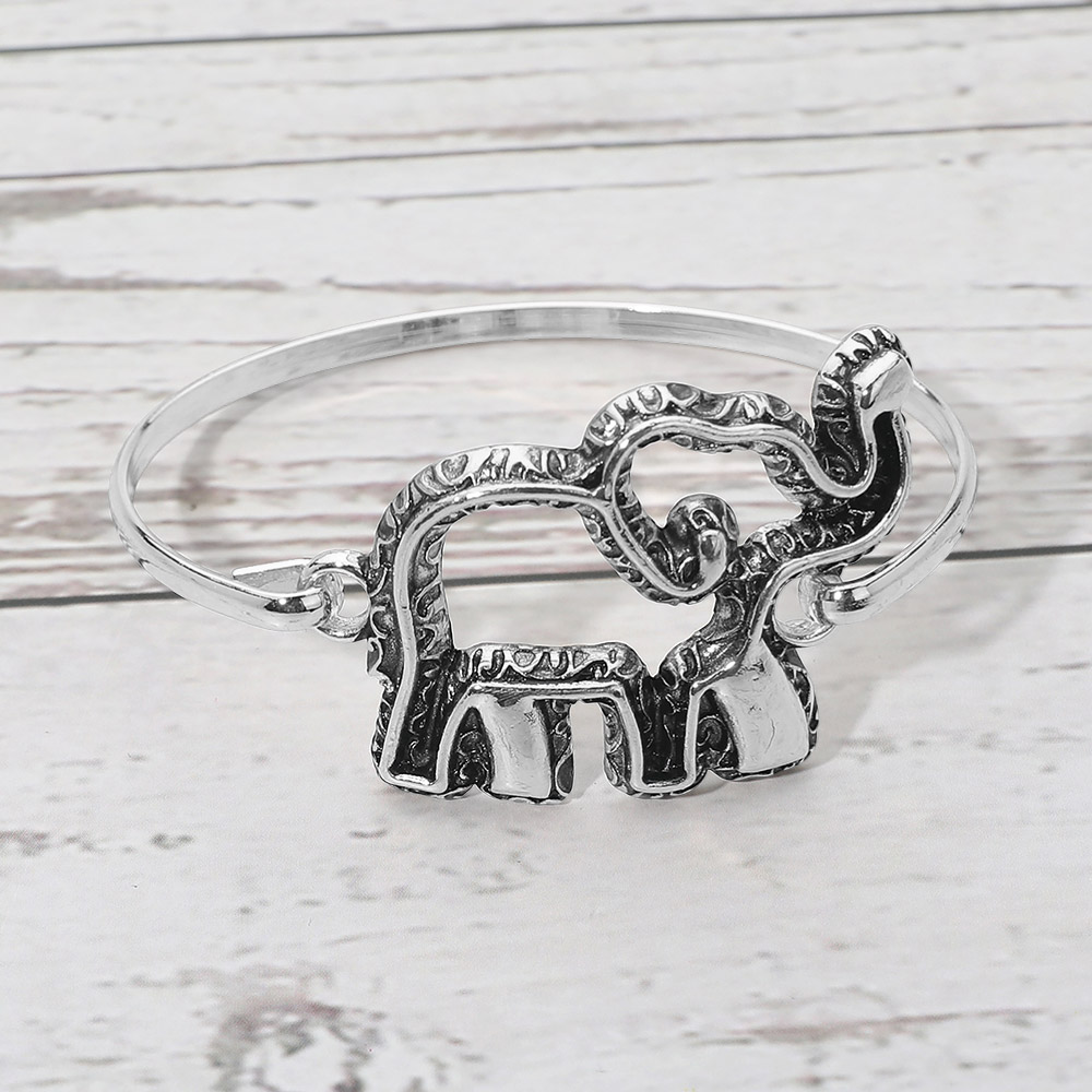 • This open bangle bracelet features a sculpted elephant charm symbolizing strength, wisdom, and good fortune. The smooth bangle silhouette offers easy wear and a comfortable fit, making it ideal for everyday styling or meaningful gifting. A distinctive statement piece for boutiques seeking symbolic, trend-forward jewelry with lasting appeal and broad customer appeal.