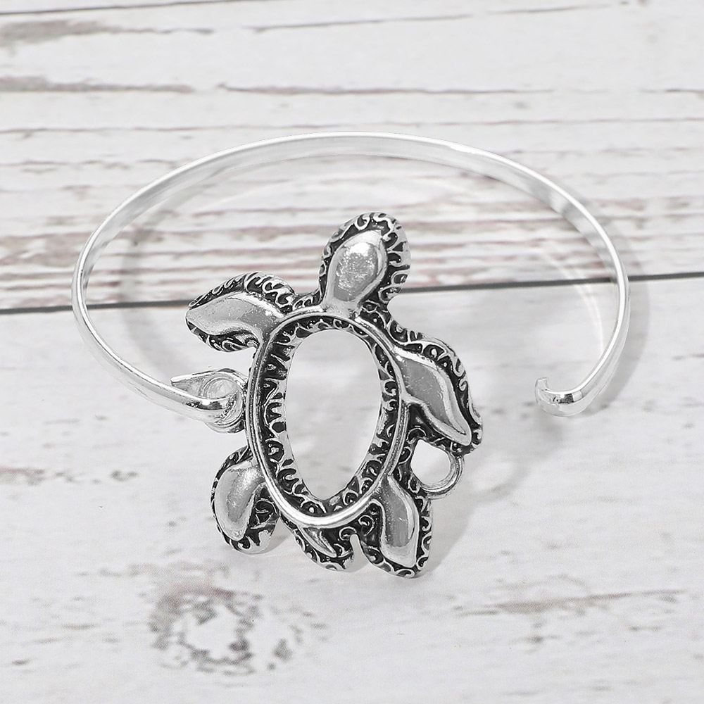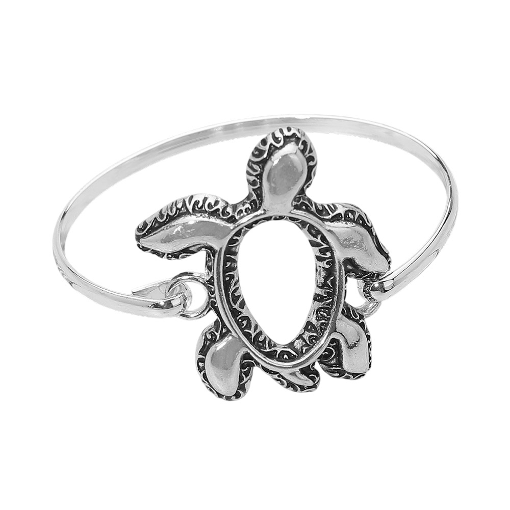 Details • Size : 1.7" H, 2.5" D • Hook Closure • This open bangle bracelet features a graceful sea turtle motif symbolizing protection, longevity, and ocean-inspired beauty. Designed with a sleek bangle silhouette for easy wear, it pairs effortlessly with casual or resort-ready looks. A meaningful accessory for beach lovers, nature-inspired collections, and gift-ready boutique jewelry assortments. • Lead and Nickel Compliant