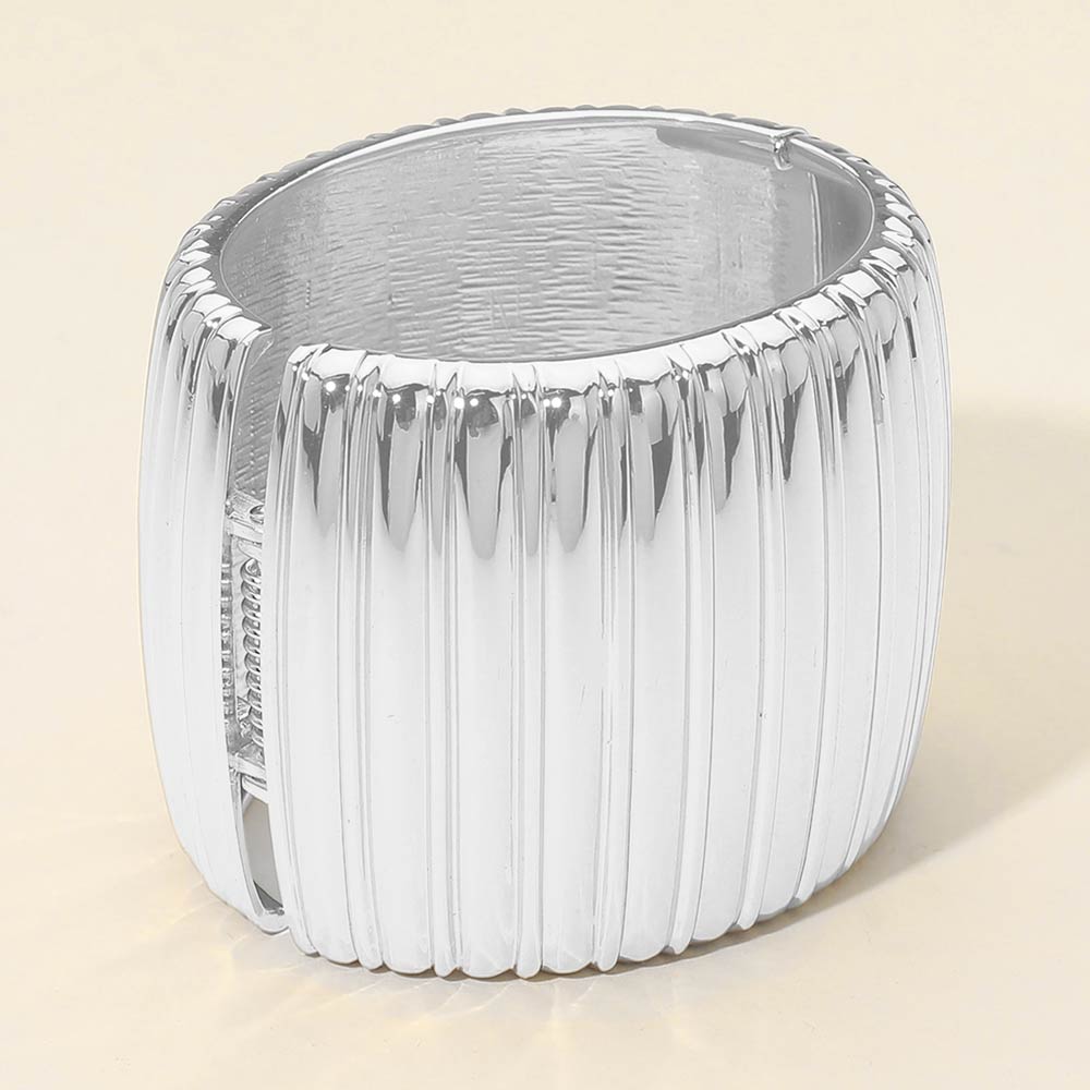 Bold Wide Ribbed Metal Hinged Bangle Bracelet
